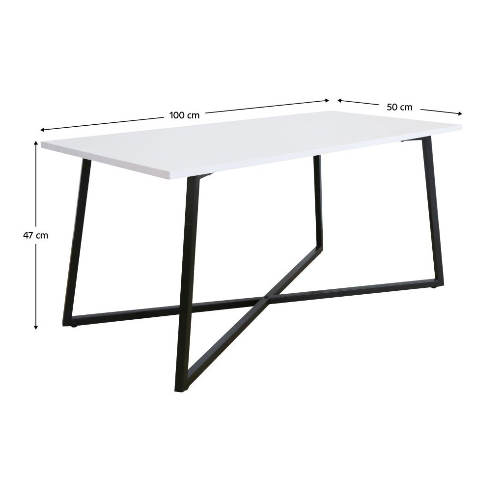 Konferenčný stolík BERTEL v elegantnej bielo-čiernej kombinácii je praktickým doplnkom do každého interiéru. Vyrobený z laminovanej MDF a kovu, s rozmermi 100x50x47 cm a nosnosťou 20 kg. Dodávaný v de