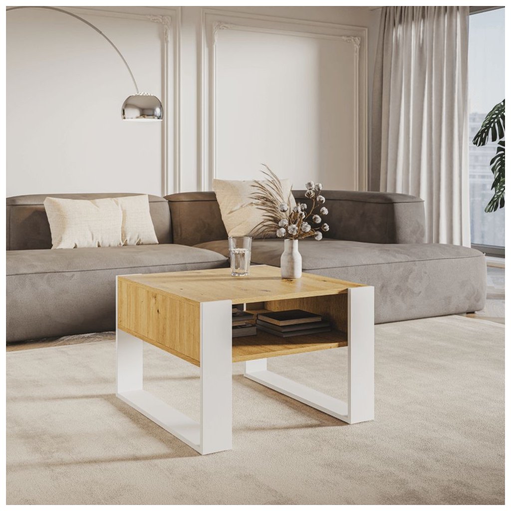 Konferenčný stolík CARA 2 v kombinácii dub artisan a biela je praktický a moderný. S rozmermi 67x68,2x45 cm a policou ponúka dostatok priestoru. Nosnosť vrchnej dosky je 10 kg. Dodáva sa v demonte.