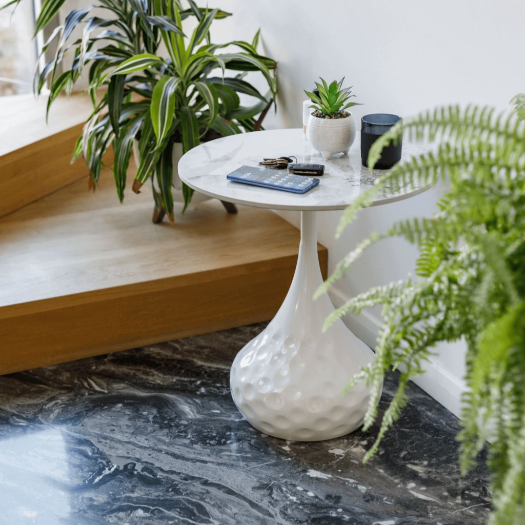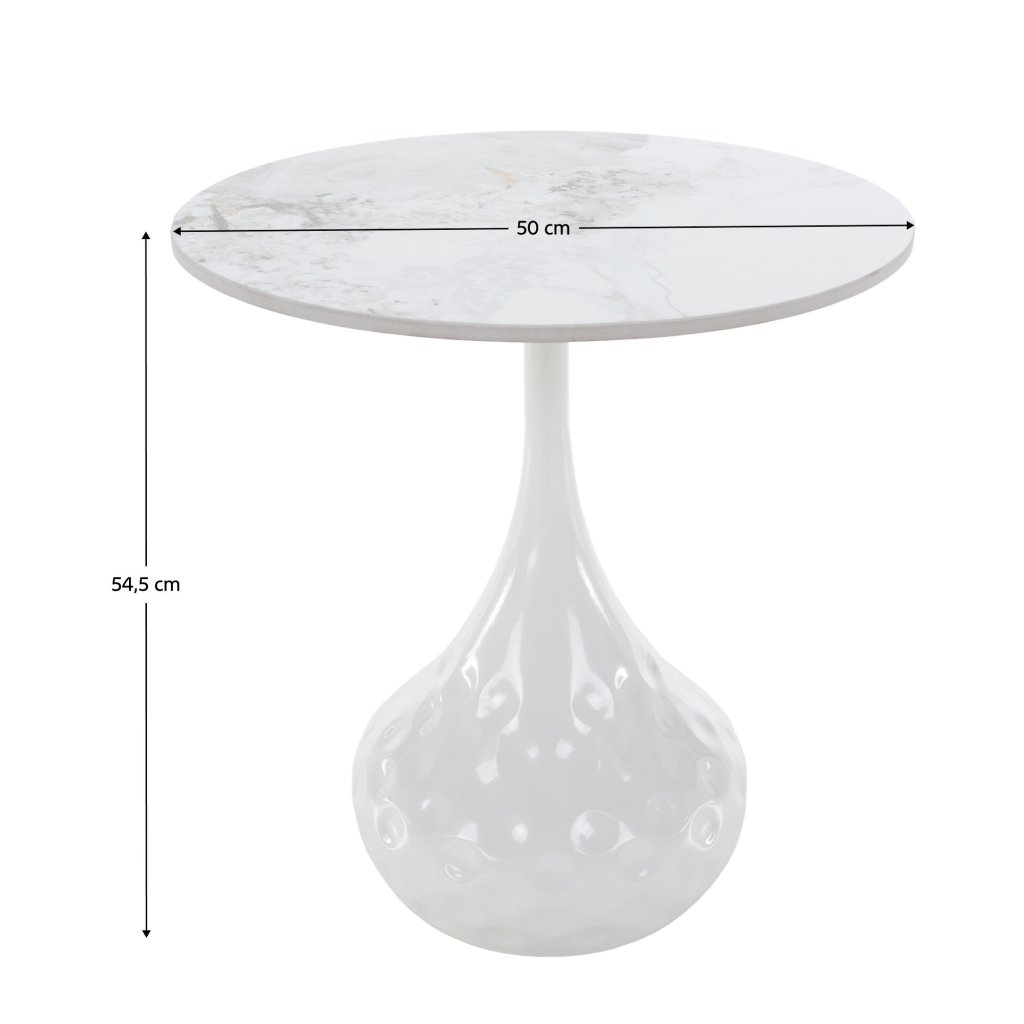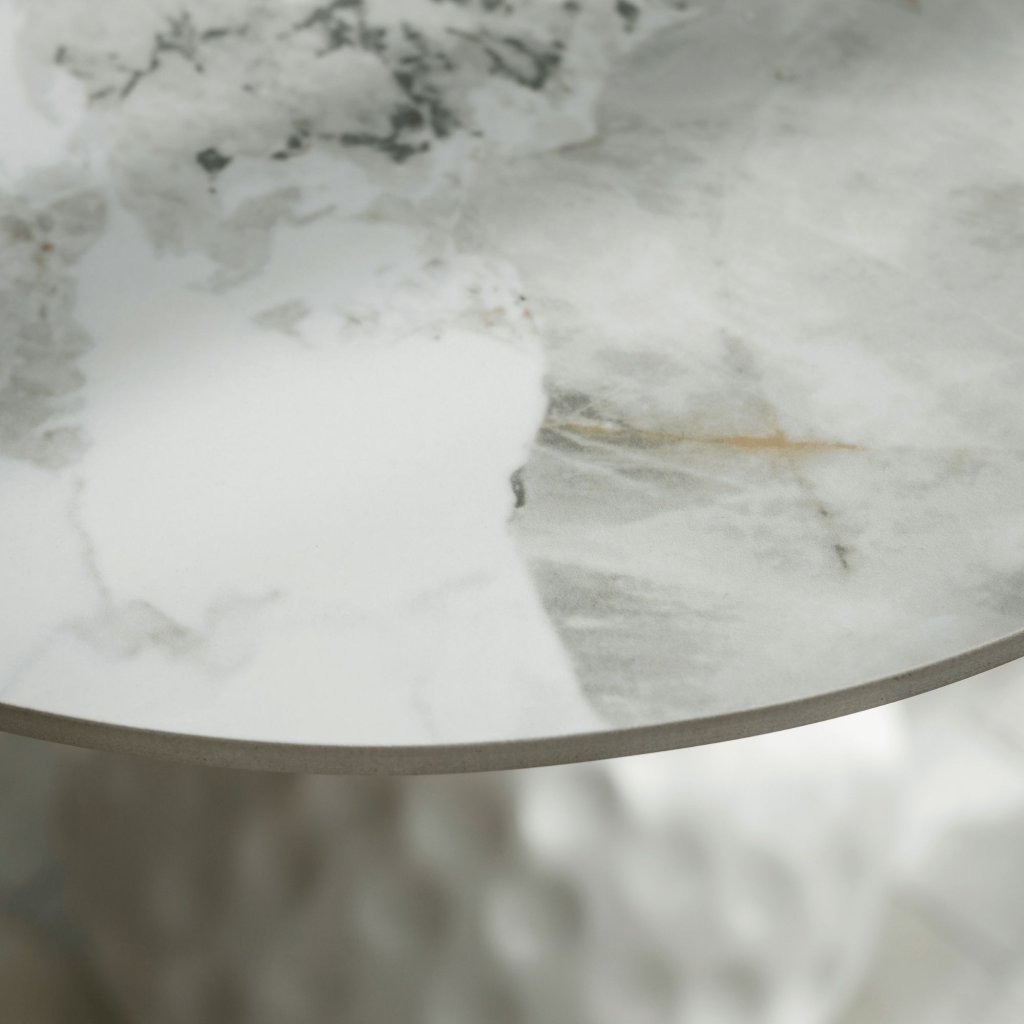 Vyrobený z brúseného kameňa a ocele, tento stolík sa nielen dobre vyzerá, ale je aj veľmi odolný. S jeho nosnosťou 15 kg a hrúbkou platu 1,1 cm sa môžete spoľahnúť na jeho stabilitu a dlhú životnosť. Dodáva sa v demonte, čo uľahčuje prepravu a montáž.