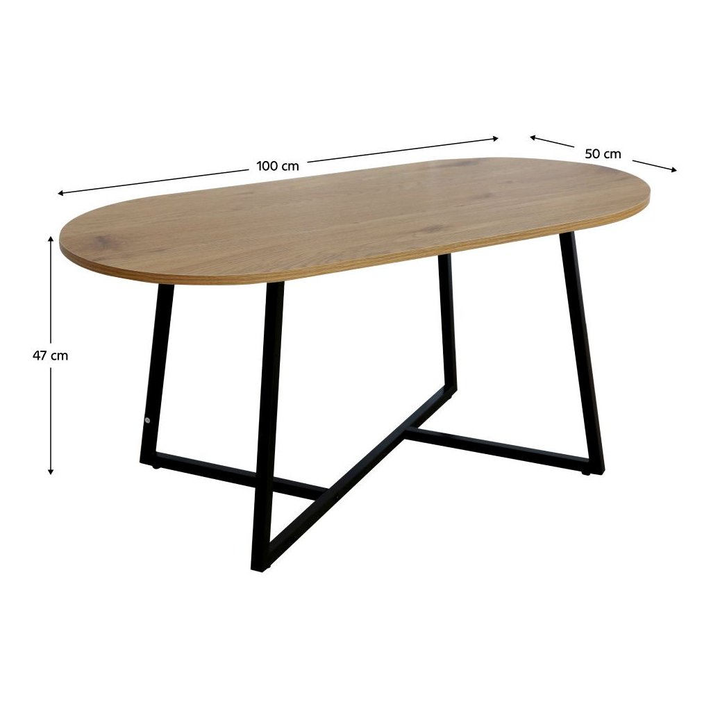 Konferenčný stolík FREMONT v kombinácii dub/čierna spojuje moderný dizajn a praktickosť. Rozmery 100x50x47 cm a nosnosť 20 kg robia z neho ideálny doplnok do každého interiéru. Dodávané v demonte.