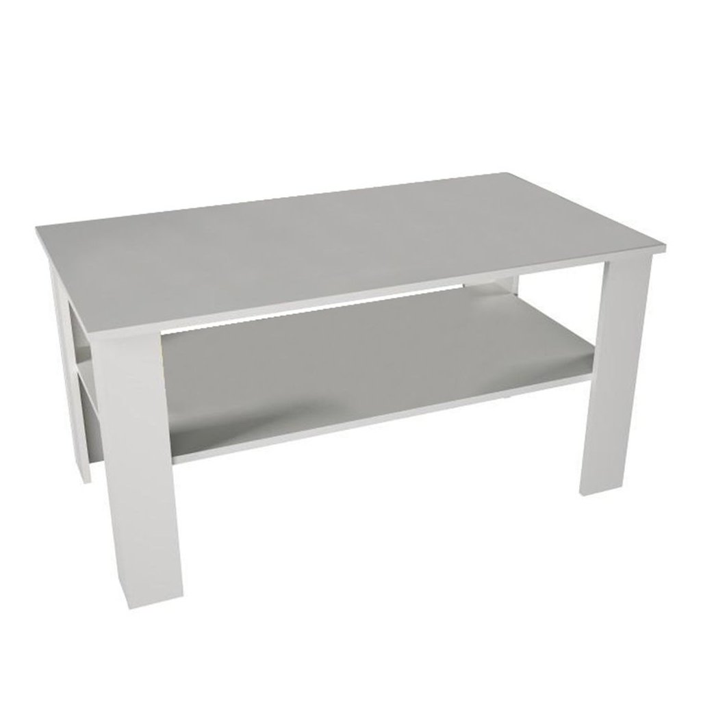 Konferenčný stolík v bielom prevedení s rozmermi 110x60x55 cm je vyrobený z kvalitnej laminovanej DTD. Hrúbka materiálu je 16 mm. Dodávaný v demonte, ideálny do každého interiéru.