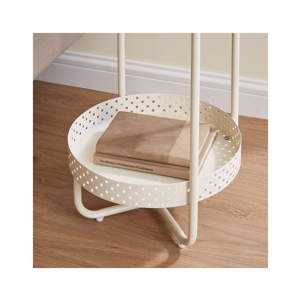 Okrúhla doska poskytuje stabilnú plochu pre odloženie drobných predmetov, zatiaľ čo praktický spodný odkladací priestor ponúka ďalšie možnosti uskladnenia. Rektifikačné pätky na nohách zabezpečujú stabilitu aj na nerovnom povrchu, čo zaručuje pohodlné používanie stolíka.