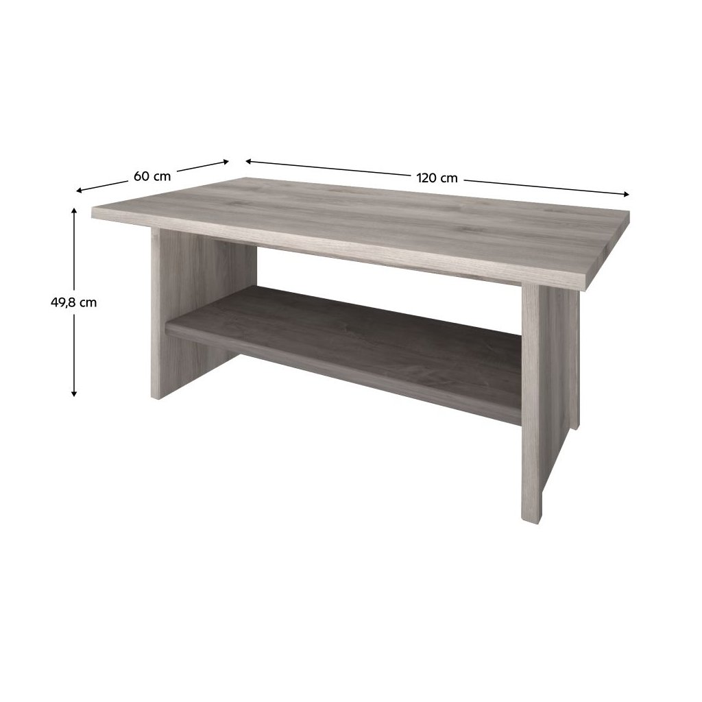 Vyrobený z kvalitného laminovaného DTD materiálu, konferenčný stolík JESI je odolný a ľahko udržiavateľný. S odkladacím priestorom a policou ponúka dostatok miesta na vaše obľúbené knihy, časopisy alebo dekorácie.