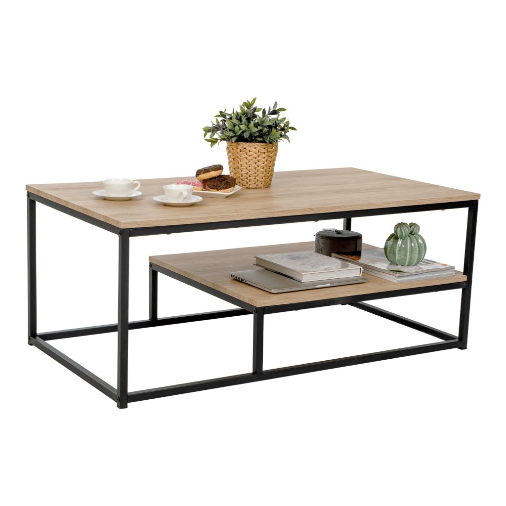 Konferenčný stolík LARON v elegantnom prevedení dub svetlý/čierna je ideálnym doplnkom pre váš obývací priestor. Spojuje moderný dizajn s praktickosťou a ponúka dostatok úložného priestoru pre vaše obľúbené knihy, časopisy alebo dekorácie. Jeho industriálny štýl a kvalitné materiály zaručujú dlhú životnosť a funkčnosť.
