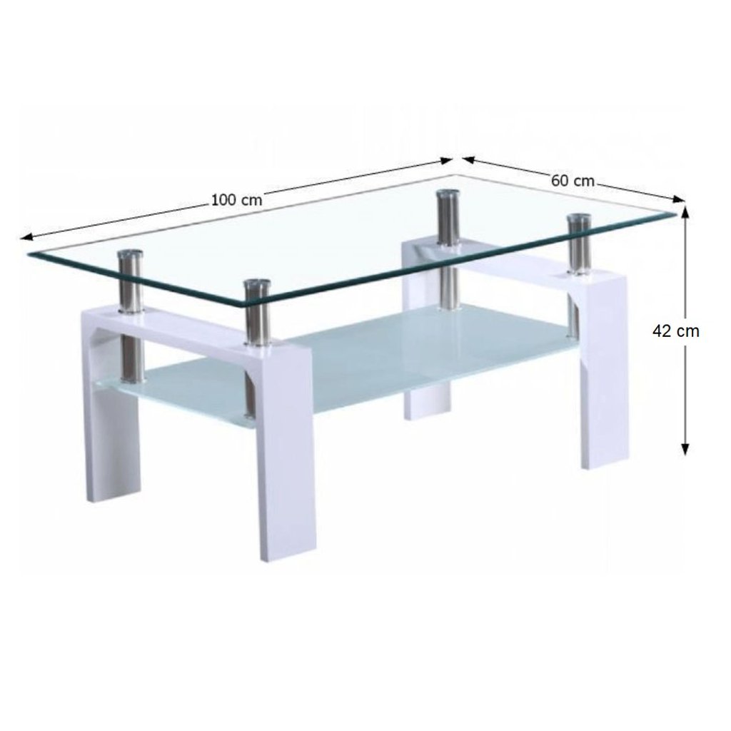 Tento stolík ponúka dostatok plochy pre odloženie nápojov, kníh či dekorácií, pričom jeho vysoký lesk a kombinácia s čírym sklom pridávajú na vzdušnosti a luxuse. Vyrobený z kvalitného MDF materiálu, je odolný a ľahko sa udržiava v čistote.