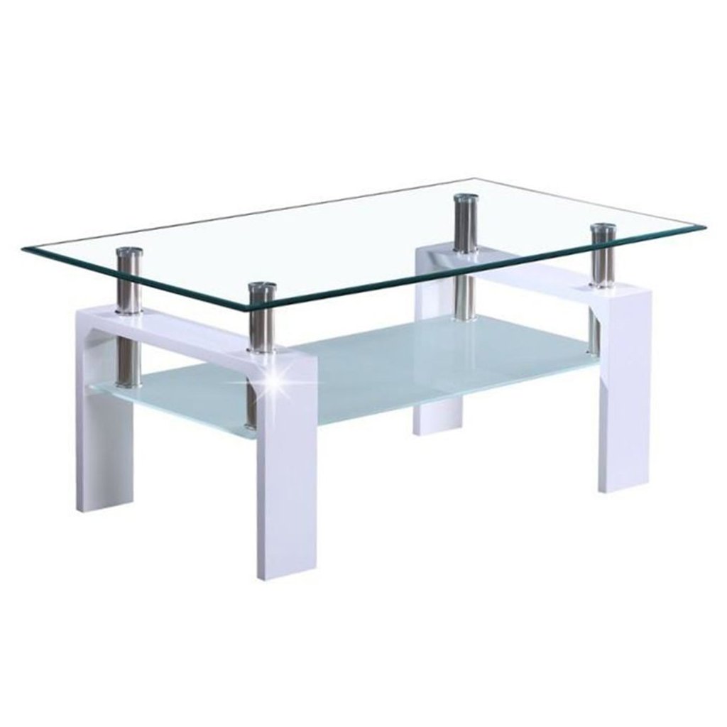 Konferenčný stolík LIBOR v bielom prevedení s extra vysokým leskom a čírym sklom. Rozmery 100x60x42 cm, hrúbka materiálu 20 mm. Dodávaný v demonte, ideálny do moderného interiéru.