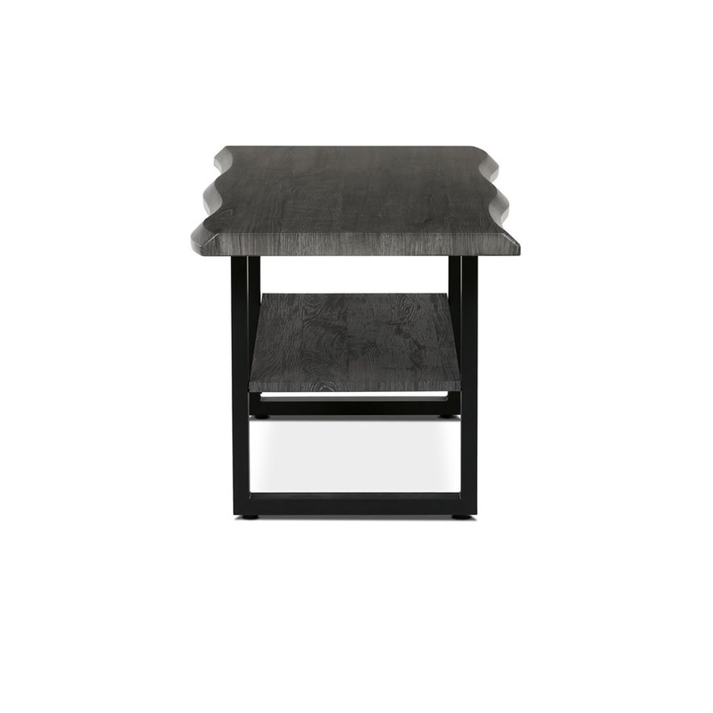 Konferenčný stolík MALOR v dekore šedého duba prináša eleganciu do vášho interiéru. Robustná kovová konštrukcia zaručuje stabilitu, atypický tvar MDF dosky dodáva štýlovosť a spodná polica ponúka prak