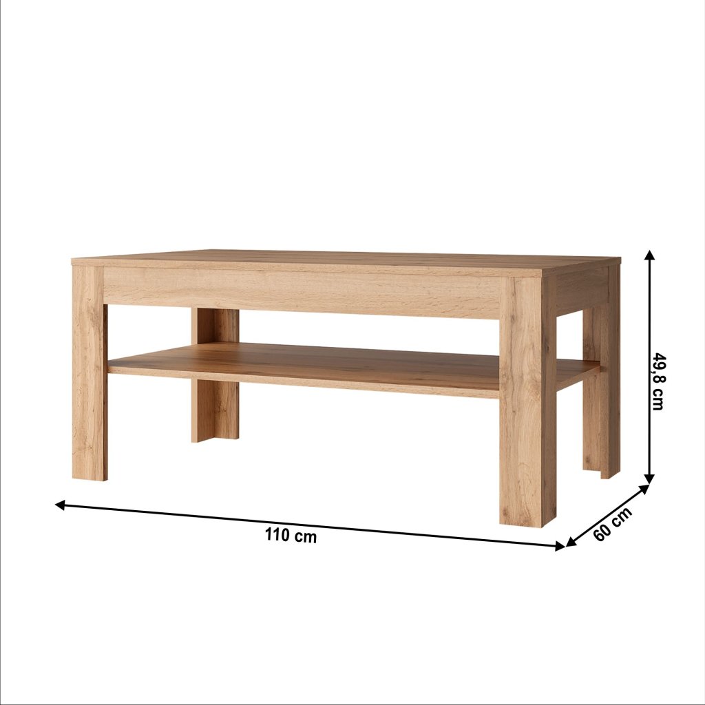 Vyrobený z kvalitného laminovaného DTD materiálu, konferenčný stolík ponúka odkladací priestor na časopisy, diaľkové ovládače či iné drobnosti. S jeho rozmermi sa pohodlne zmestí do menších aj väčších interiérov, čím je skvelou voľbou pre rôzne typy domácností.