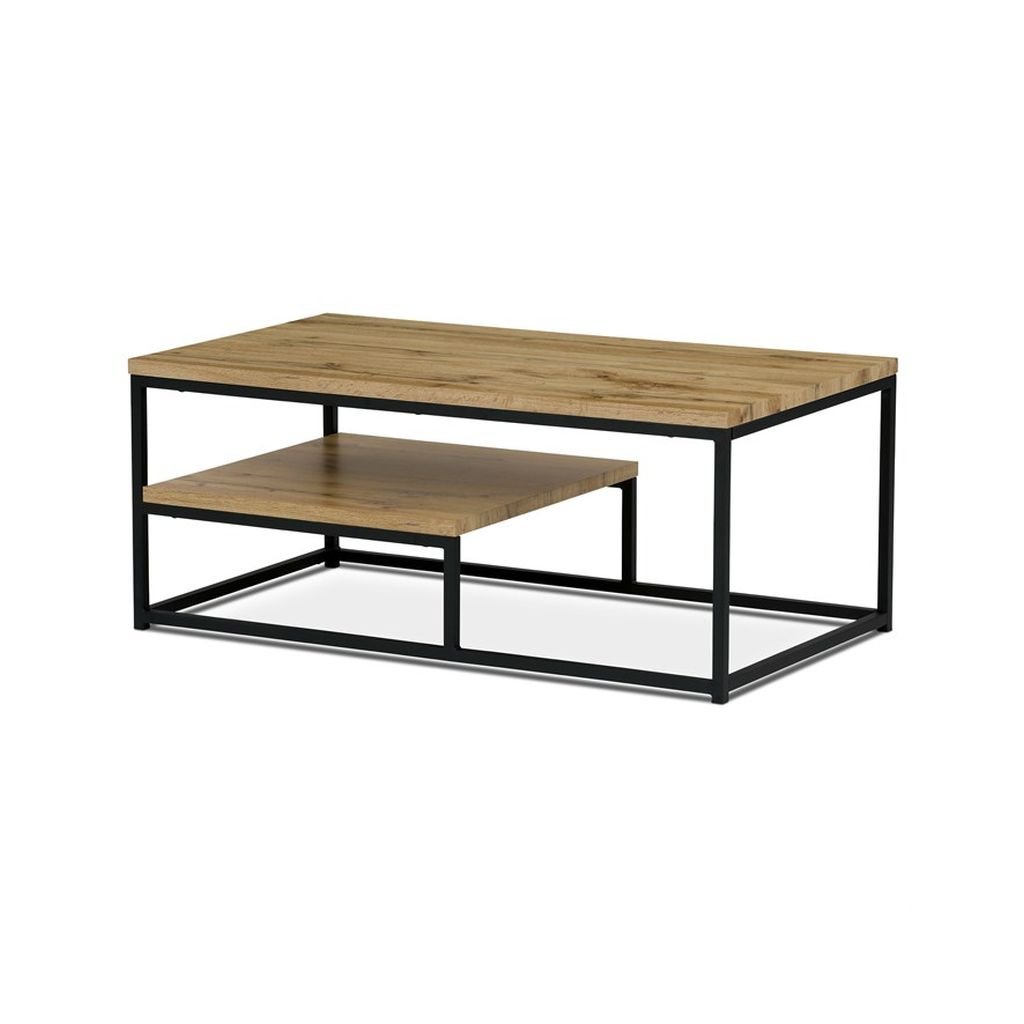 Konferenčný stolík ORION v odtieni dubu kombinuje funkčnosť a štýl. S obdĺžnikovou MDF doskou a stabilnou kovovou podnožou ponúka elegantný dizajn a praktickú bočnú policu pre úložný priestor.