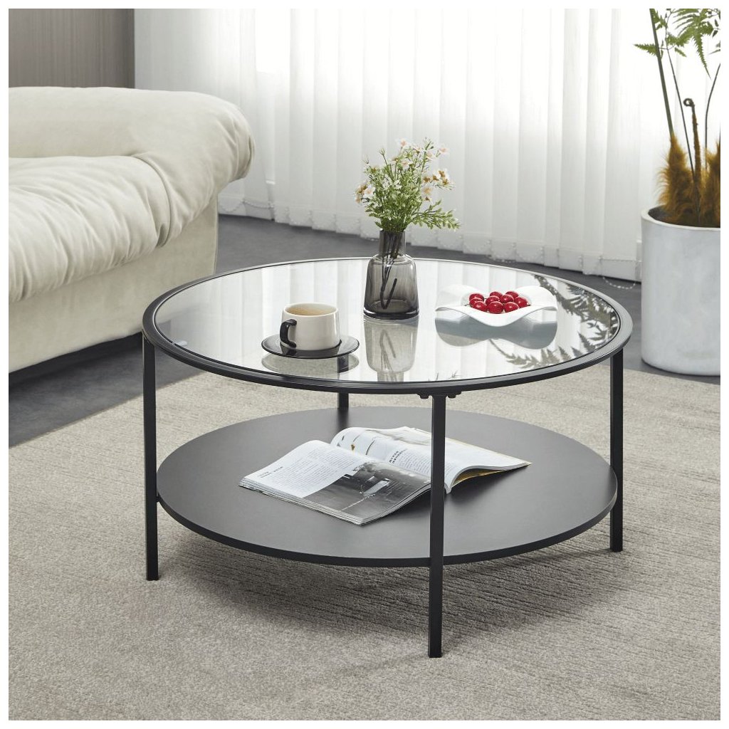Stolík je vyrobený z kombinácie tvrdeného skla, MDF a kovu, čo mu dodáva stabilitu a dlhú životnosť. Okrúhly tvar a kovové nohy prispievajú k jeho dizajnovému vzhľadu, ktorý sa hodí do rôznych štýlov zariadenia. Navyše, ponúka aj úložný priestor, čo oceníte pri organizácii drobných predmetov.