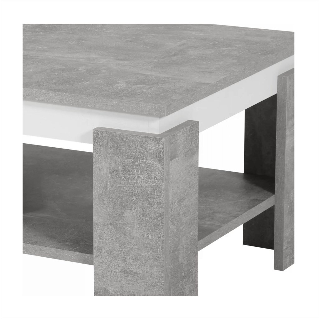 Konferenčný stolík PIANI v betónovo-bielej kombinácii ponúka moderný dizajn a praktický odkladací priestor. Rozmery 90x60x41 cm, nosnosť 15 kg, dodávaný v demonte.