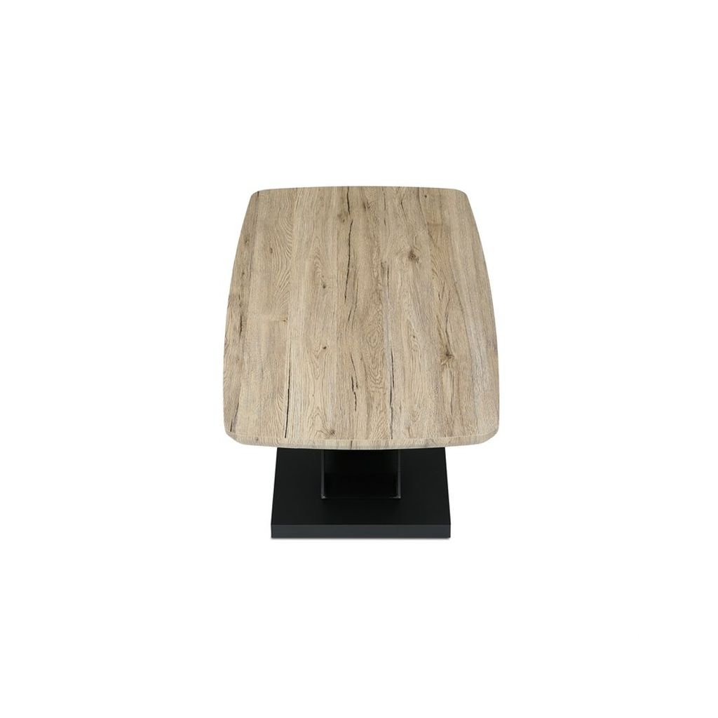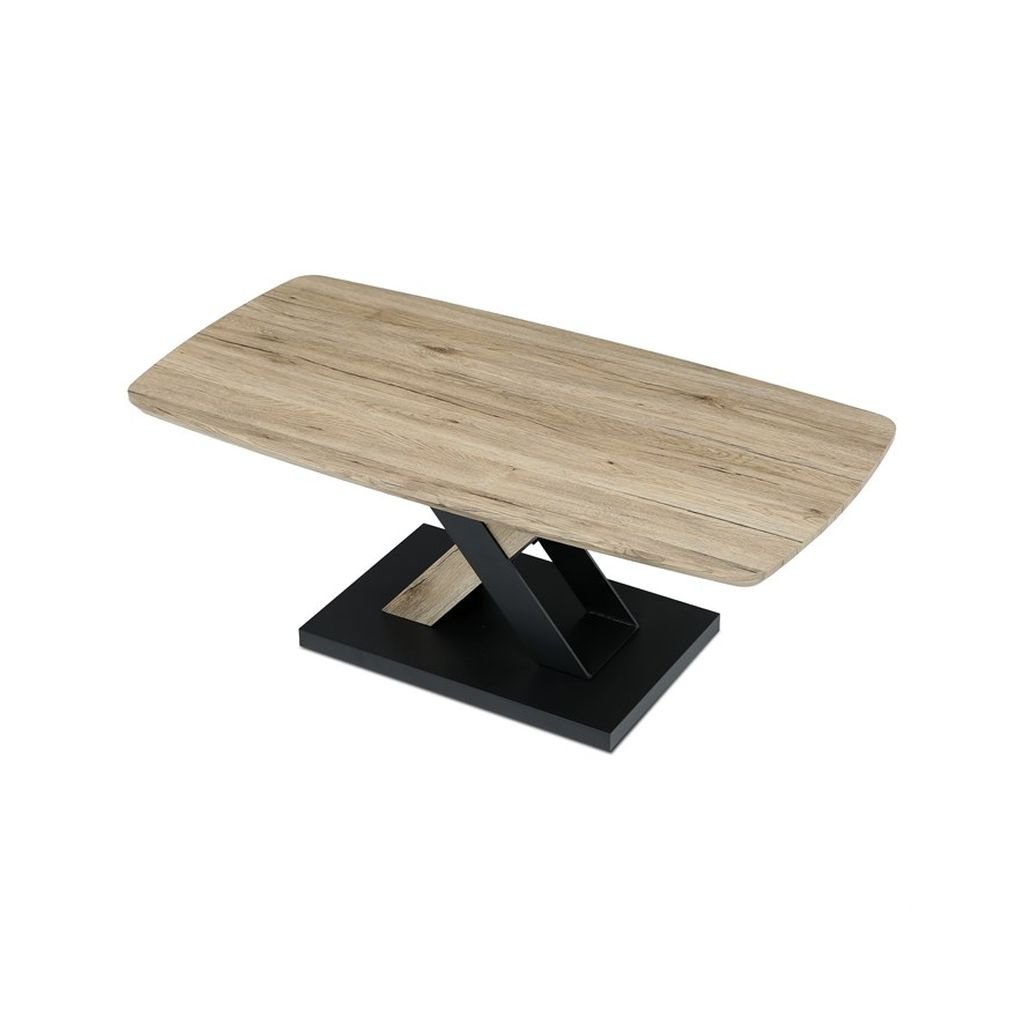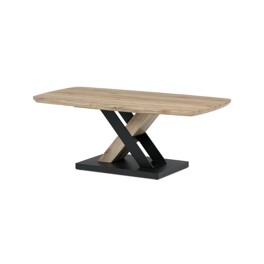 Konferenčný stolík RIVE zaujme moderným dizajnom s dekorom duba San Remo. Atypická MDF doska na centrálnej konštrukcii kombinuje prírodné a kovové prvky, pričom stabilná podnož zaručuje odolnosť a pra