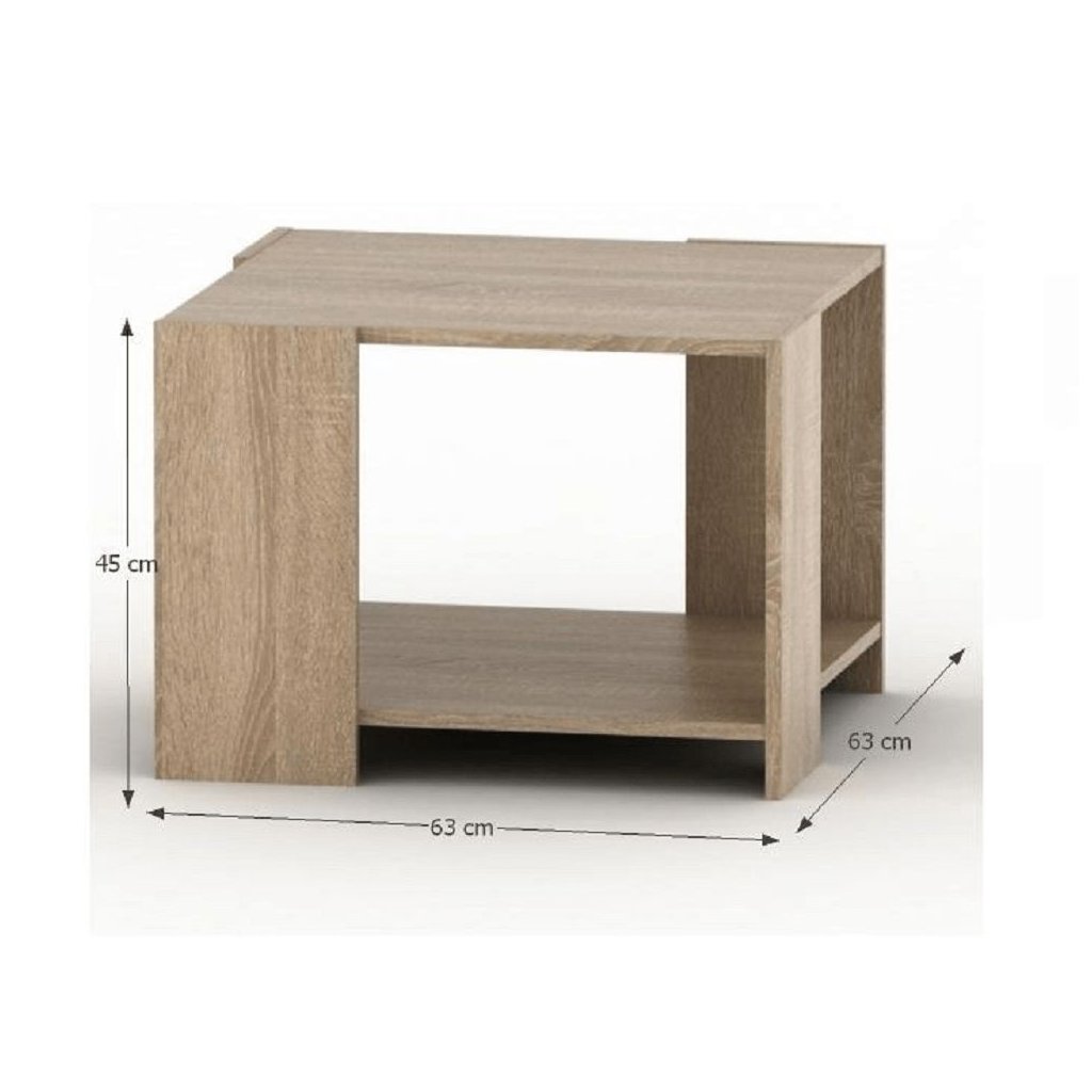 Konferenčný stolík TEMPO v dekore dub sonoma je ideálny do moderných interiérov. S rozmermi 63x63x45 cm a hrúbkou 16 mm ponúka praktický a štýlový doplnok. Dodáva sa v demonte.