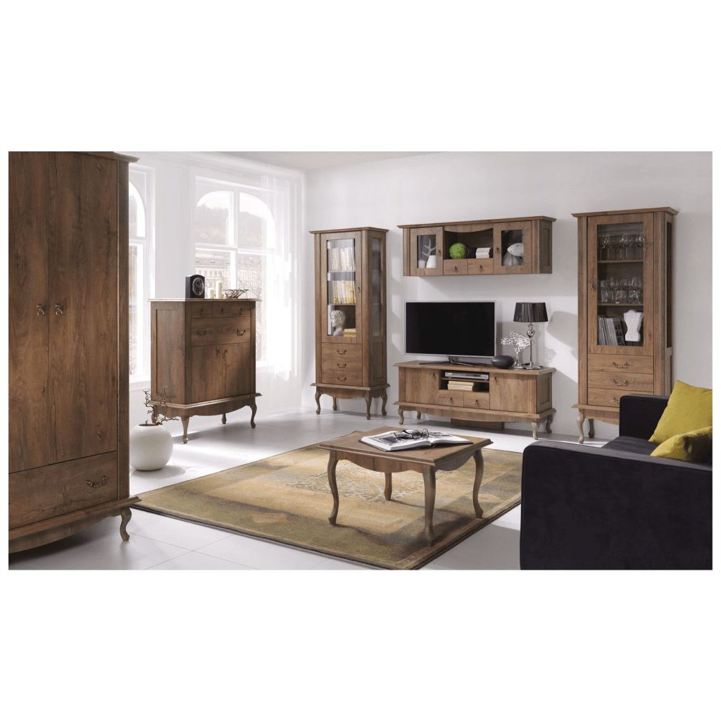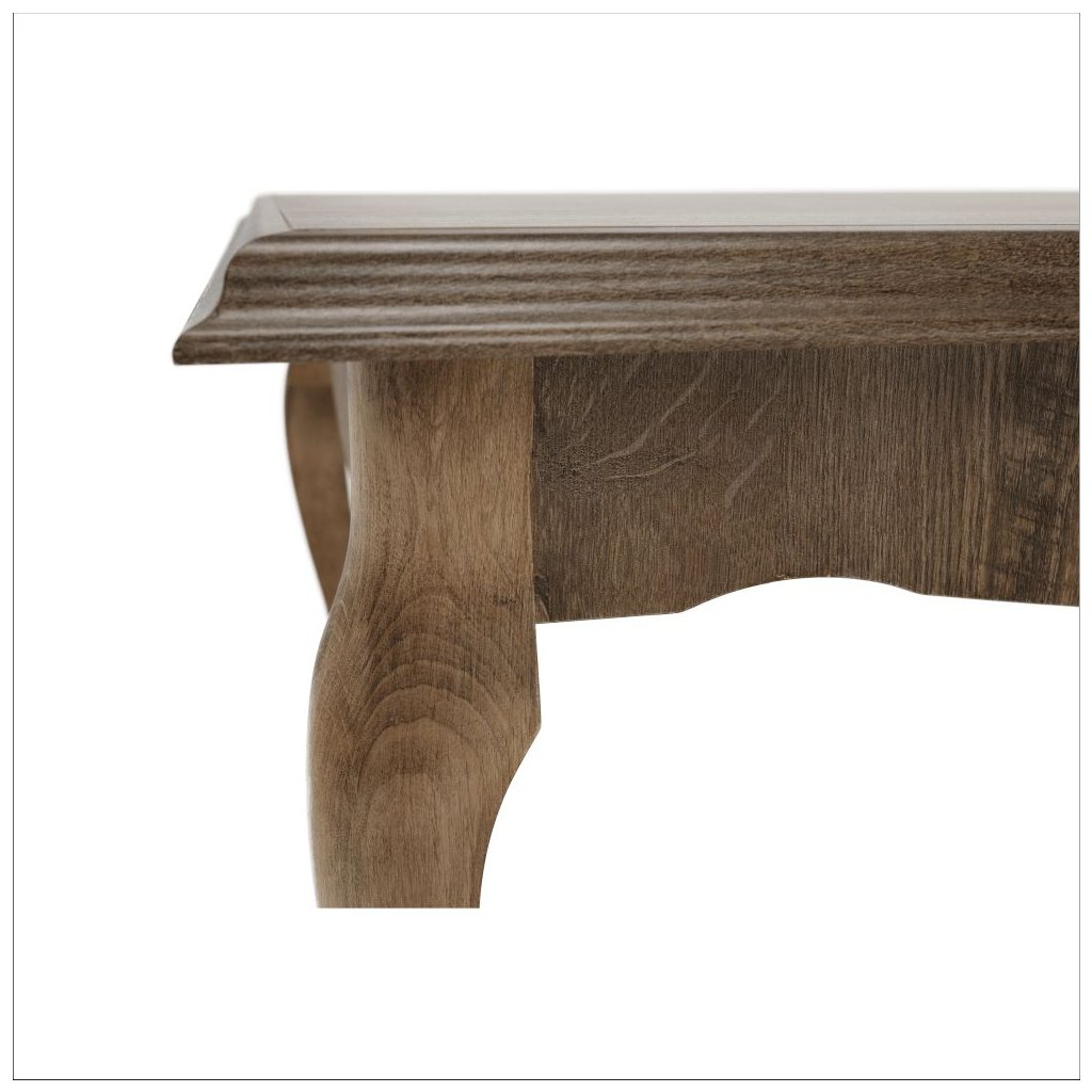 Konferenčný stolík VILAR v odtieni dub lefkas kombinuje barokový štýl s moderným dizajnom. Vyrobený z laminovanej DTD s ABS hranami, má rozmer 116x75x55 cm a stabilné drevené nohy. 3D efekt dodáva jed