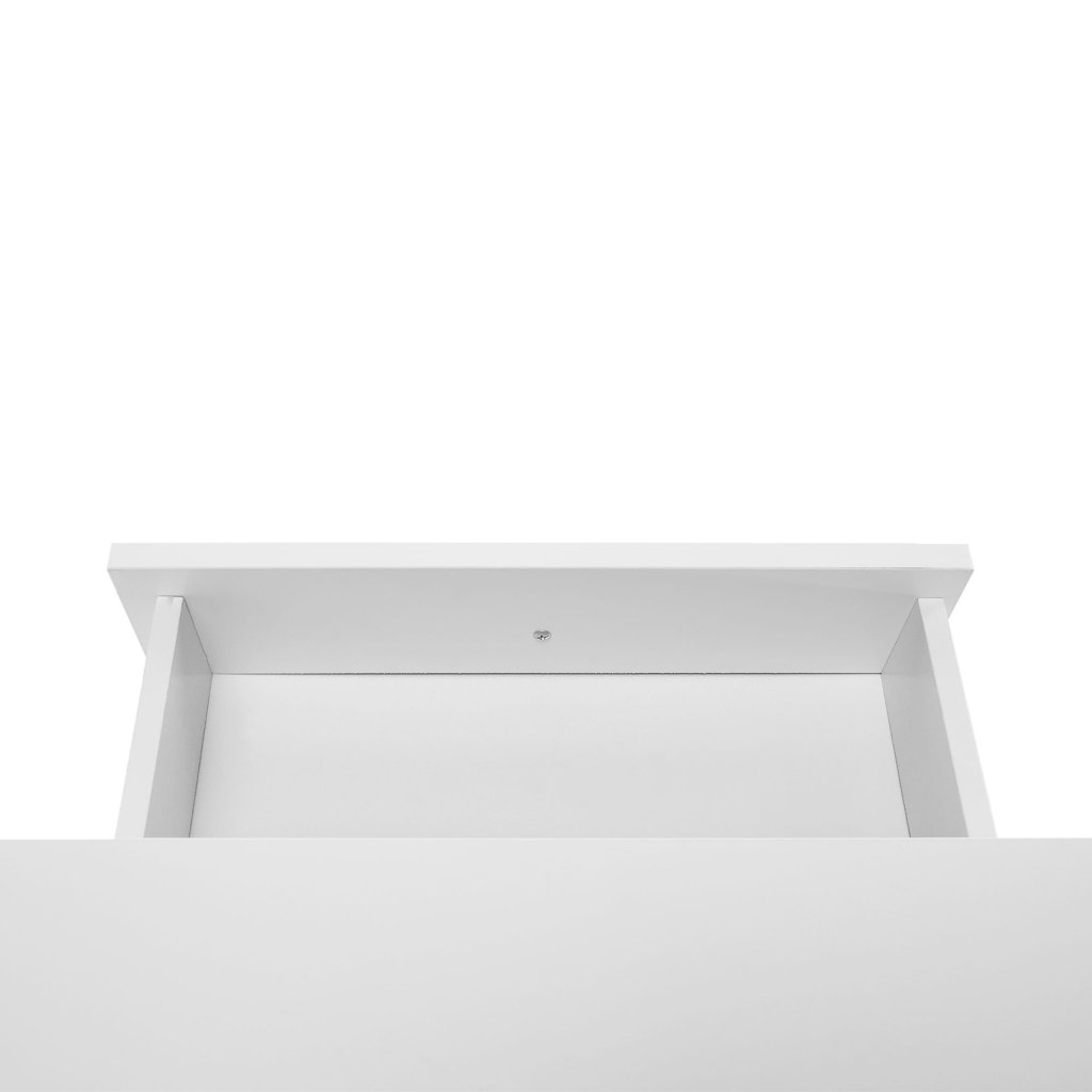 Konzolový stolík LOMIR v bielej farbe z lakovanej MDF ponúka moderný dizajn a praktickosť. S dvomi policami a dvoma zásuvkami je ideálny na uskladnenie. Rozmery: 86,6x30x80 cm. Nosnosť 35 kg. Dodávané