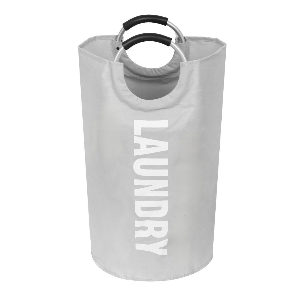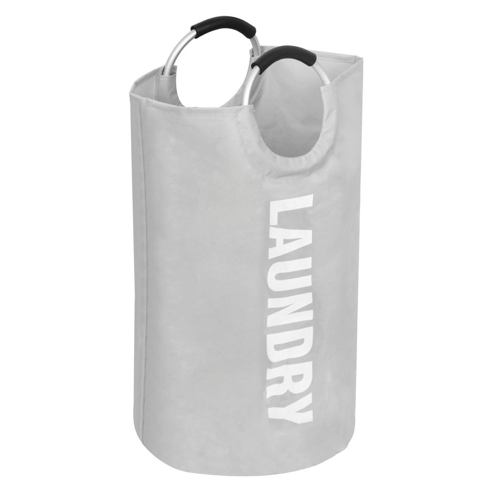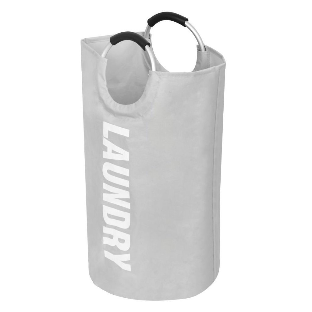 Sivý kôš na bielizeň s objemom 90 l ponúka praktický úložný priestor. Vyrobený z vodoodolného materiálu, s hliníkovými uškami pre jednoduchú manipuláciu. Rozmery: 38x79 cm.