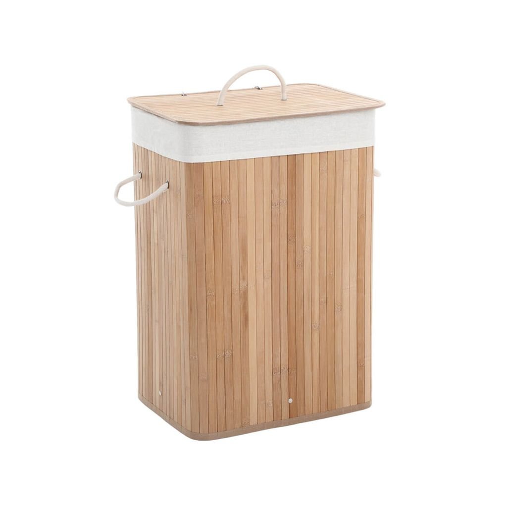 Kôš na bielizeň z prírodného bambusu s rozmermi 42 × 32,5 × 60 cm ponúka pevnosť a estetiku. Vnútorná látková vložka uľahčuje údržbu. Kovové vzpery zabezpečujú stabilitu a praktické madlo umožňuje jed