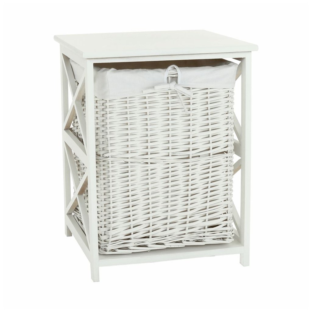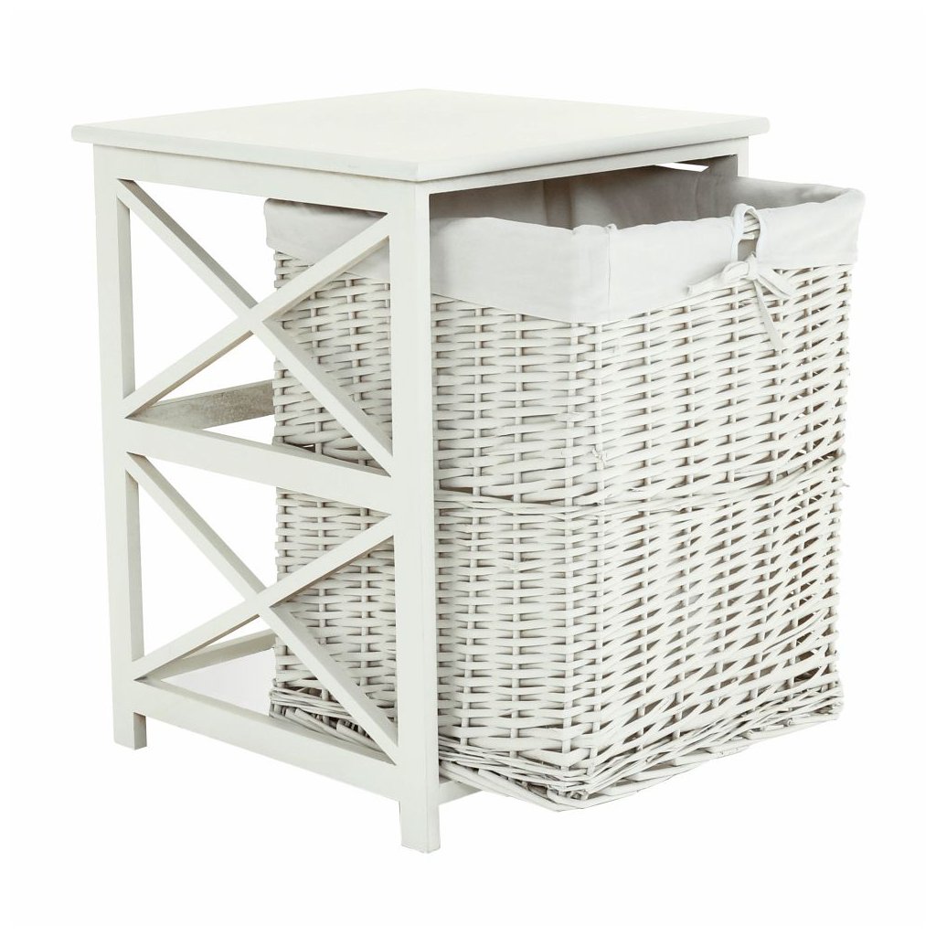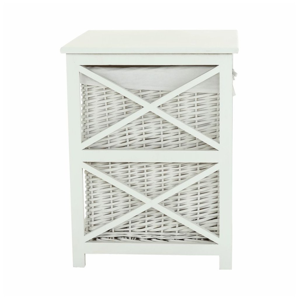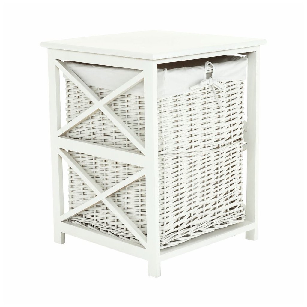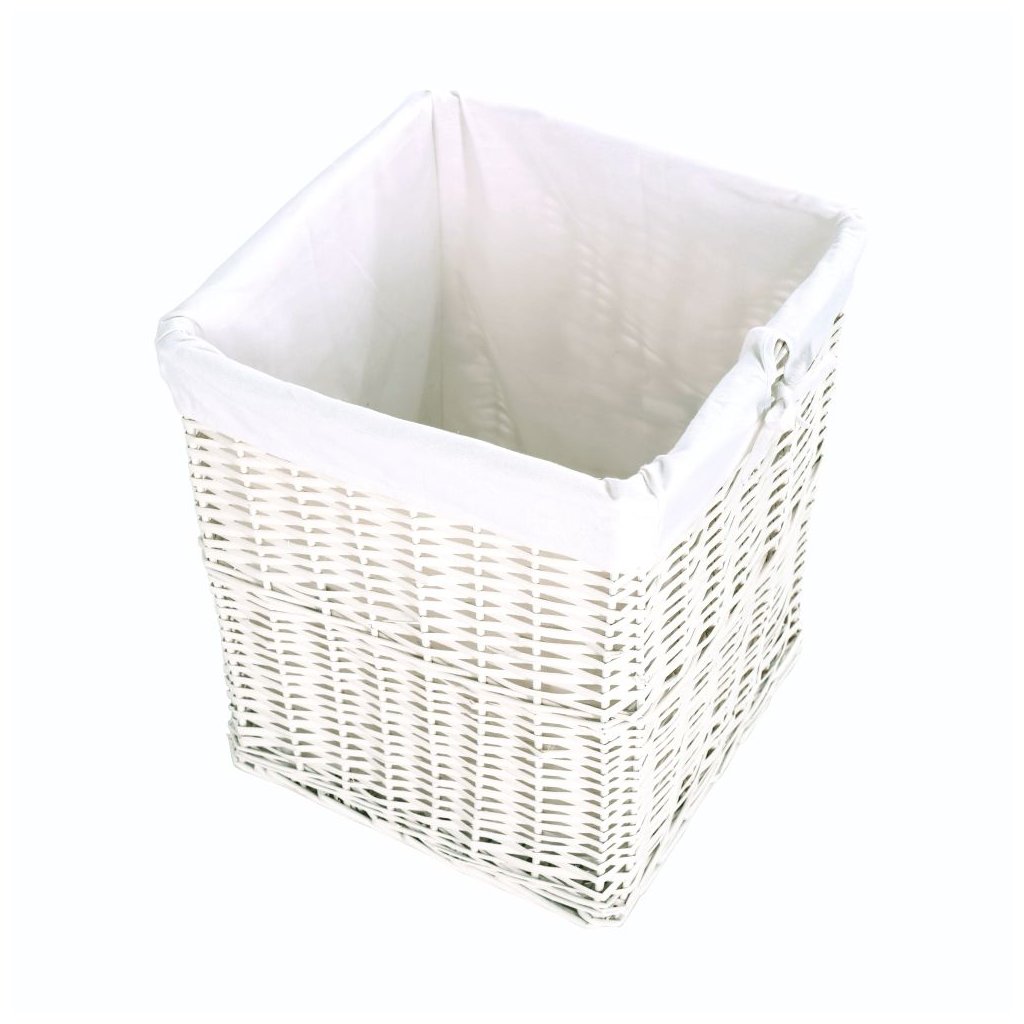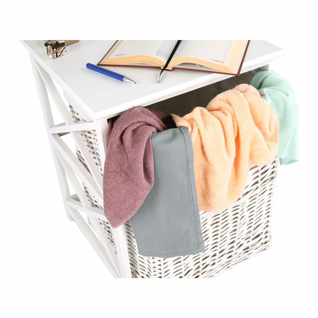 Biely kôš na bielizeň RAFAELLO z prútia, dreva a látky. Rozmery 46x46x60 cm. Praktický a štýlový doplnok do vašej domácnosti, dodávaný v monte.