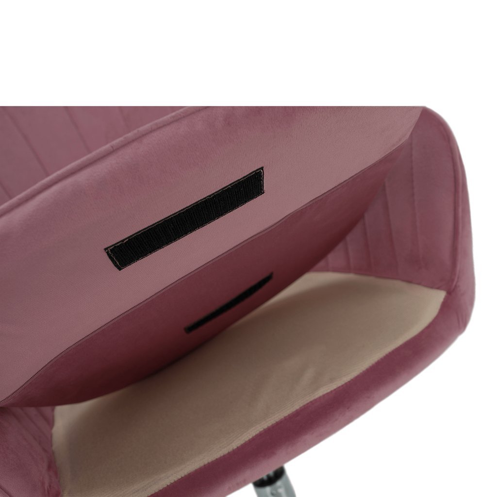 Luxusné kreslo KLIAN v ružovej zamatovej látke prináša eleganciu a pohodlie do každého interiéru. S chrómovou podstavou, otáčacím mechanizmom a regulovateľnou výškou sedu je ideálne do kancelárie aj n