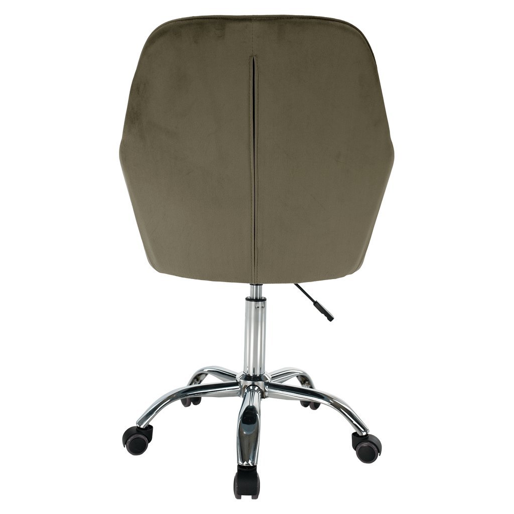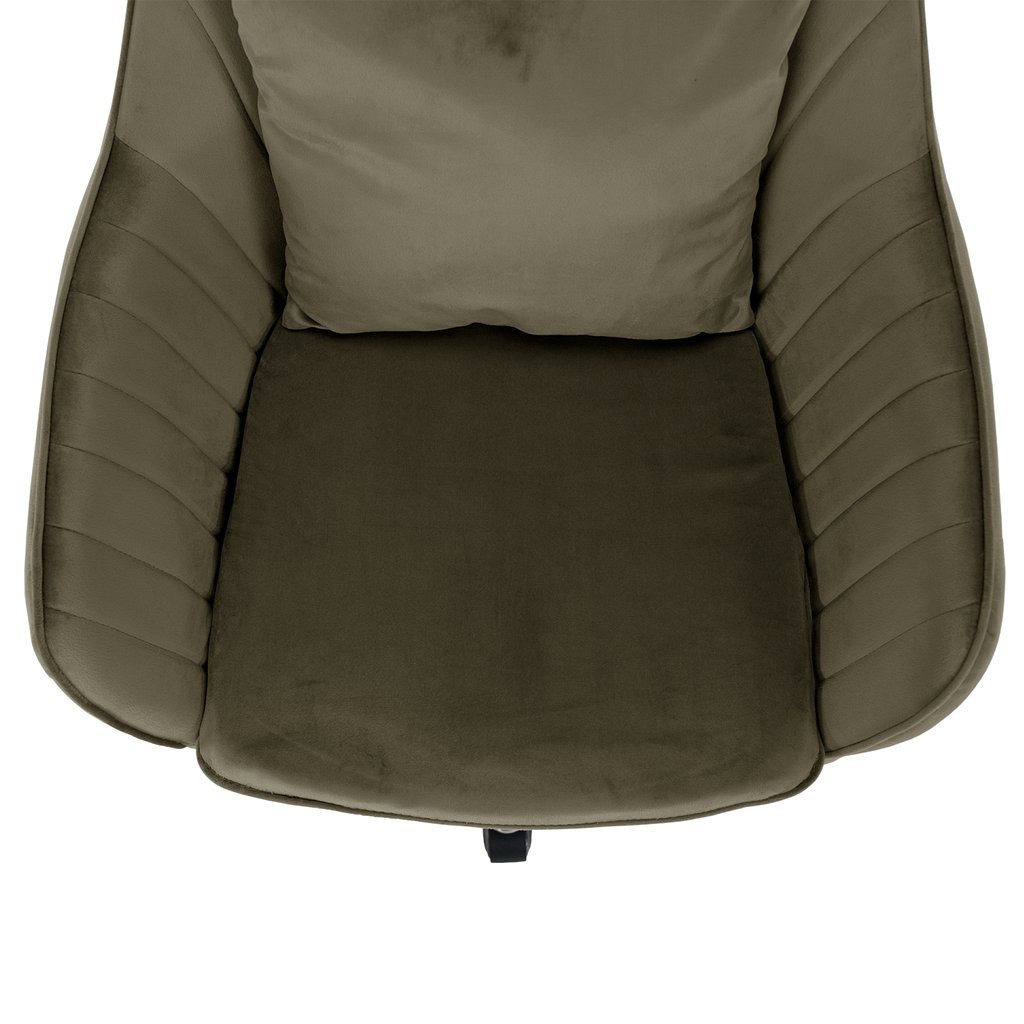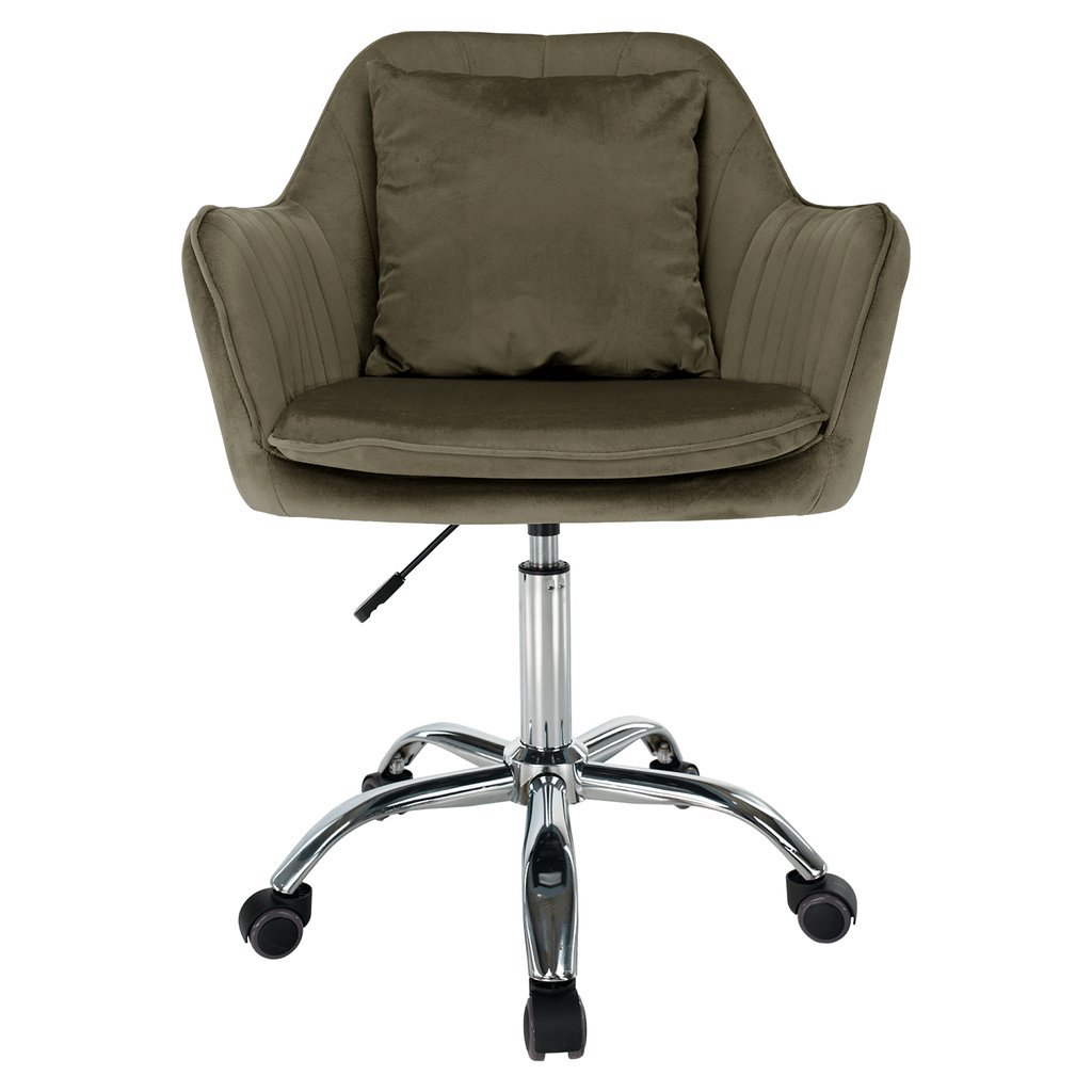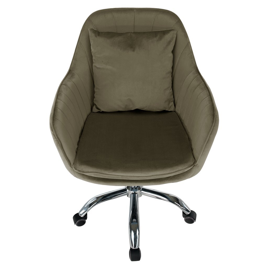 Luxusné kreslo KLIAN v sivohnedej zamatovej látke prinesie štýlový dotyk do vášho interiéru. Jeho ergonomický tvar a regulovateľná výška zaručujú maximálne pohodlie. S chrómovou podstavou a kolieskami
