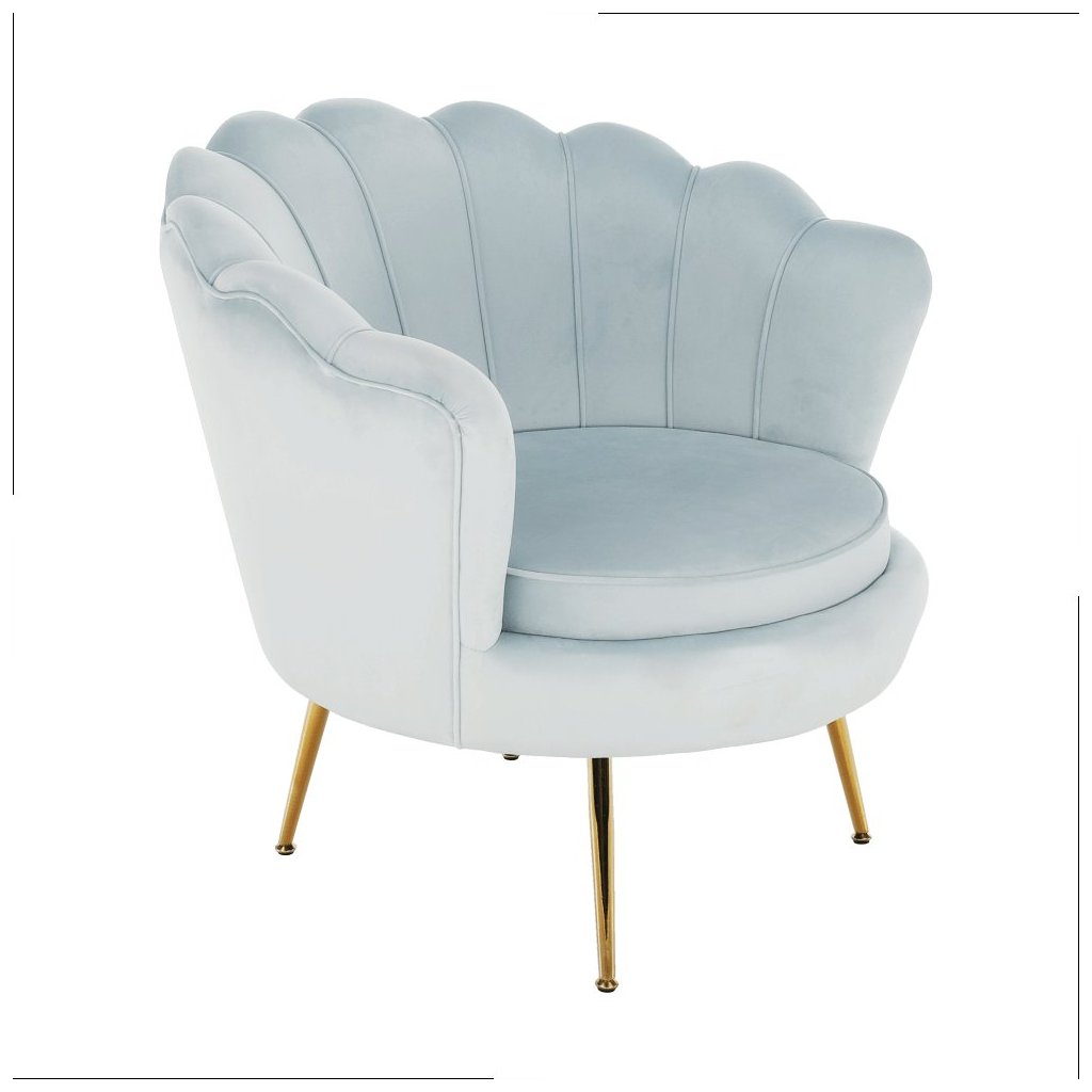 Luxusné kreslo NOBLIN v modrej zamatovej látke kombinuje elegantný dizajn s kovovými nohami v zlatom odtieni. Pôsobí štýlovo a pohodlne, ideálne pre milovníkov moderného interiéru.