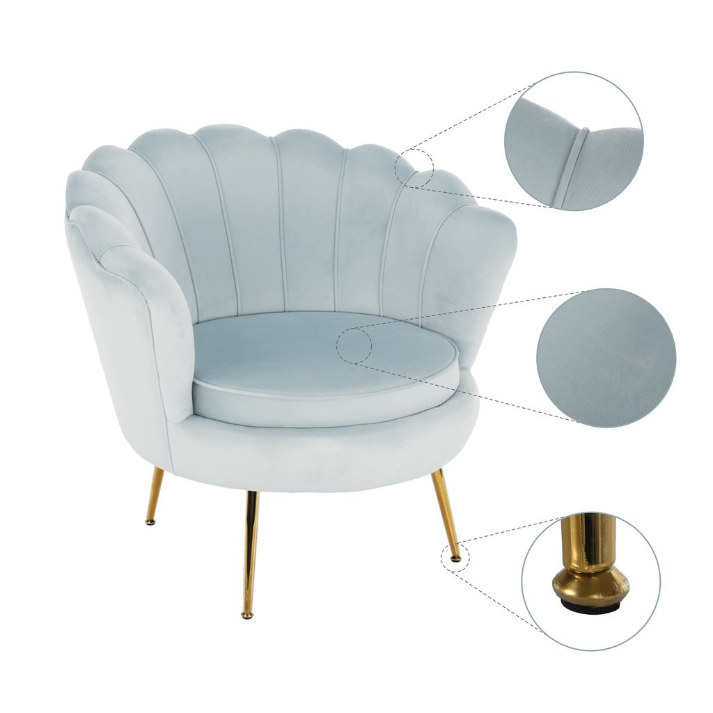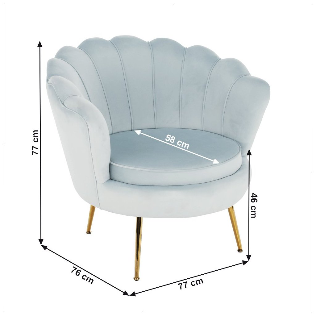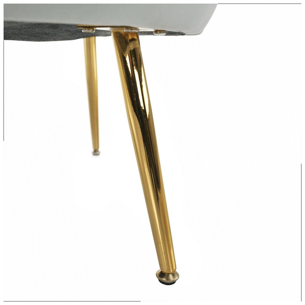 - Štíhle kovové nohy v gold chróm-zlatej farbe dodávajú kreslu vzdušnosť.