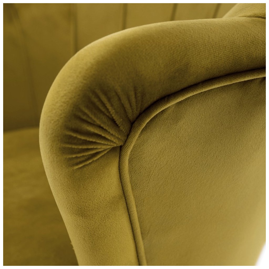Luxusné kreslo NOBLIN v žltej zamatovej látke dodá vášmu interiéru štýlový šmrnc. Elegantné prešitie a zlaté kovové nohy zabezpečujú nielen krásu, ale aj stabilitu. Ideálne pre milovníkov Art-deco!