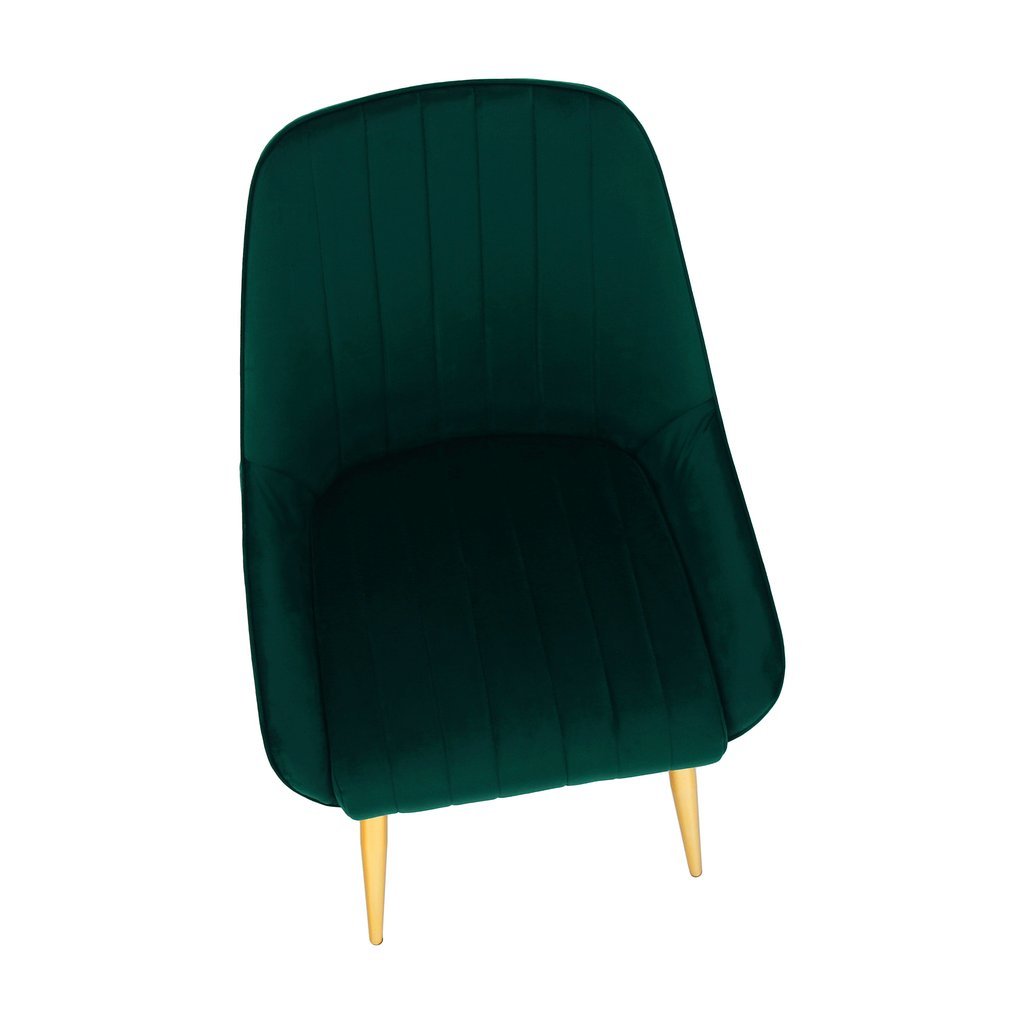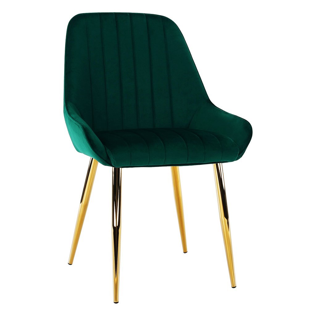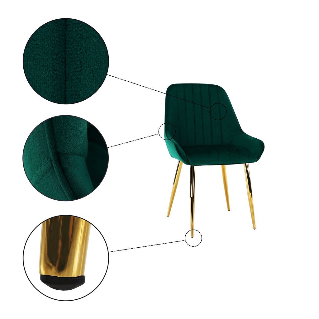 - Elegantný dizajn: Smaragdová zamatová látka a kovové nohy v gold chróm prevedení.