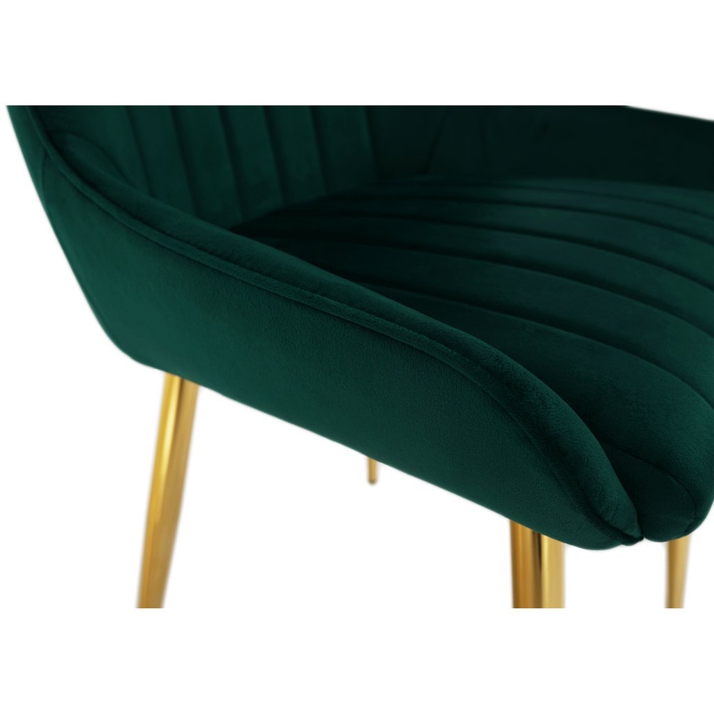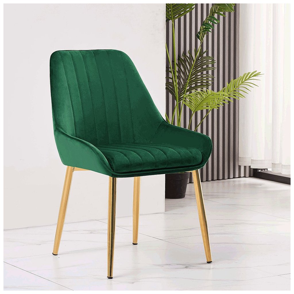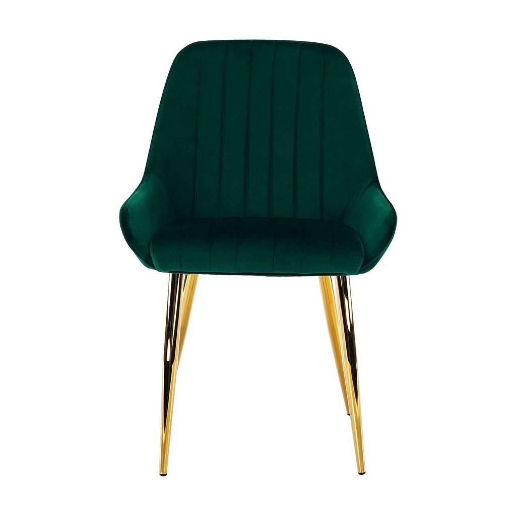 - Elegantný dizajn: Smaragdová zamatová látka a kovové nohy v gold chróm prevedení.