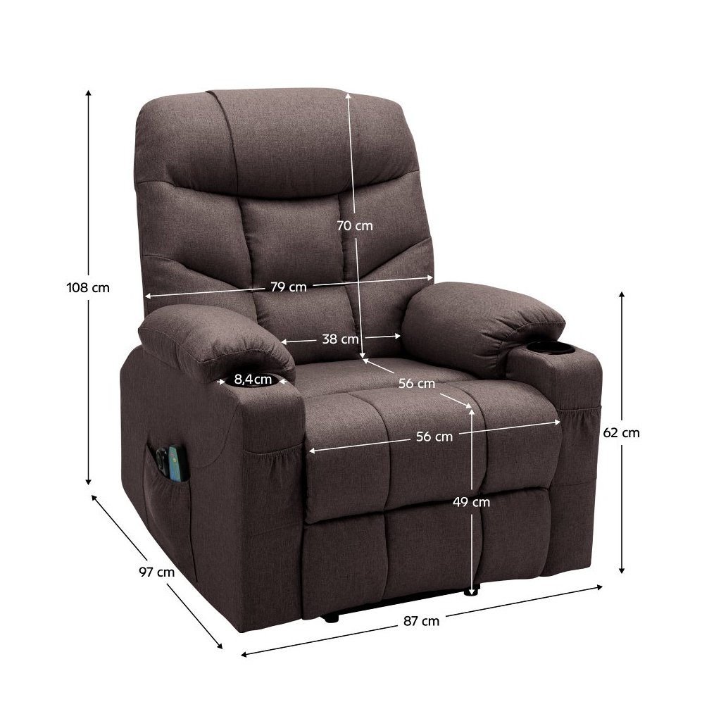 Užite si relaxáciu s Masážnym polohovacím kreslom - HUDSON, Hnedá látka.
