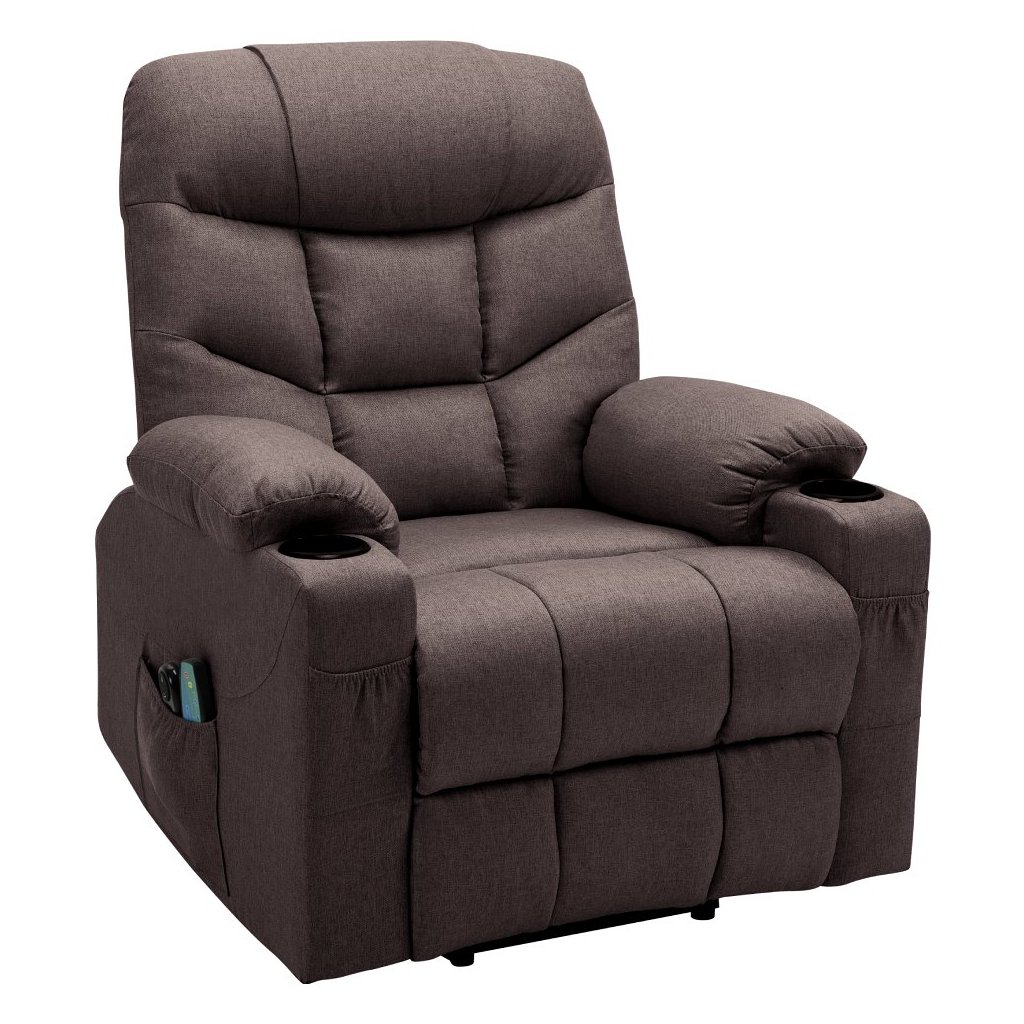 Masážne polohovacie kreslo - HUDSON, Hnedá látka