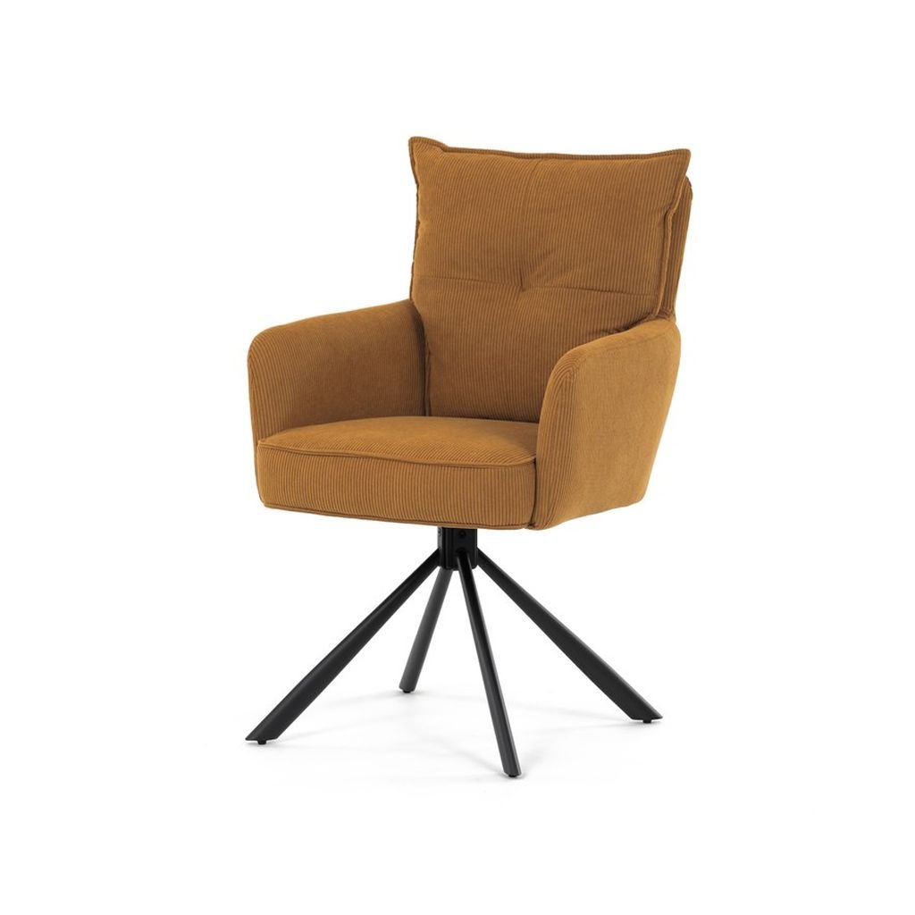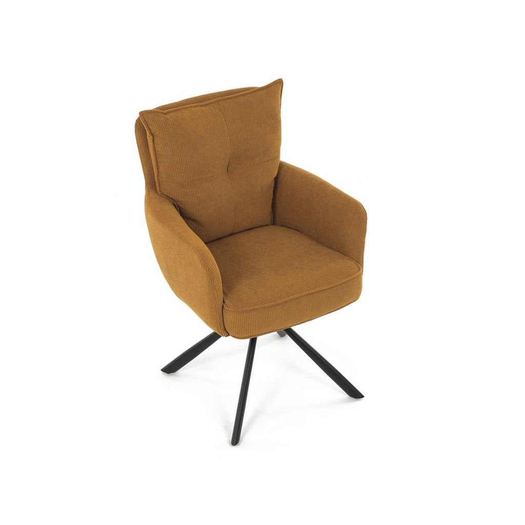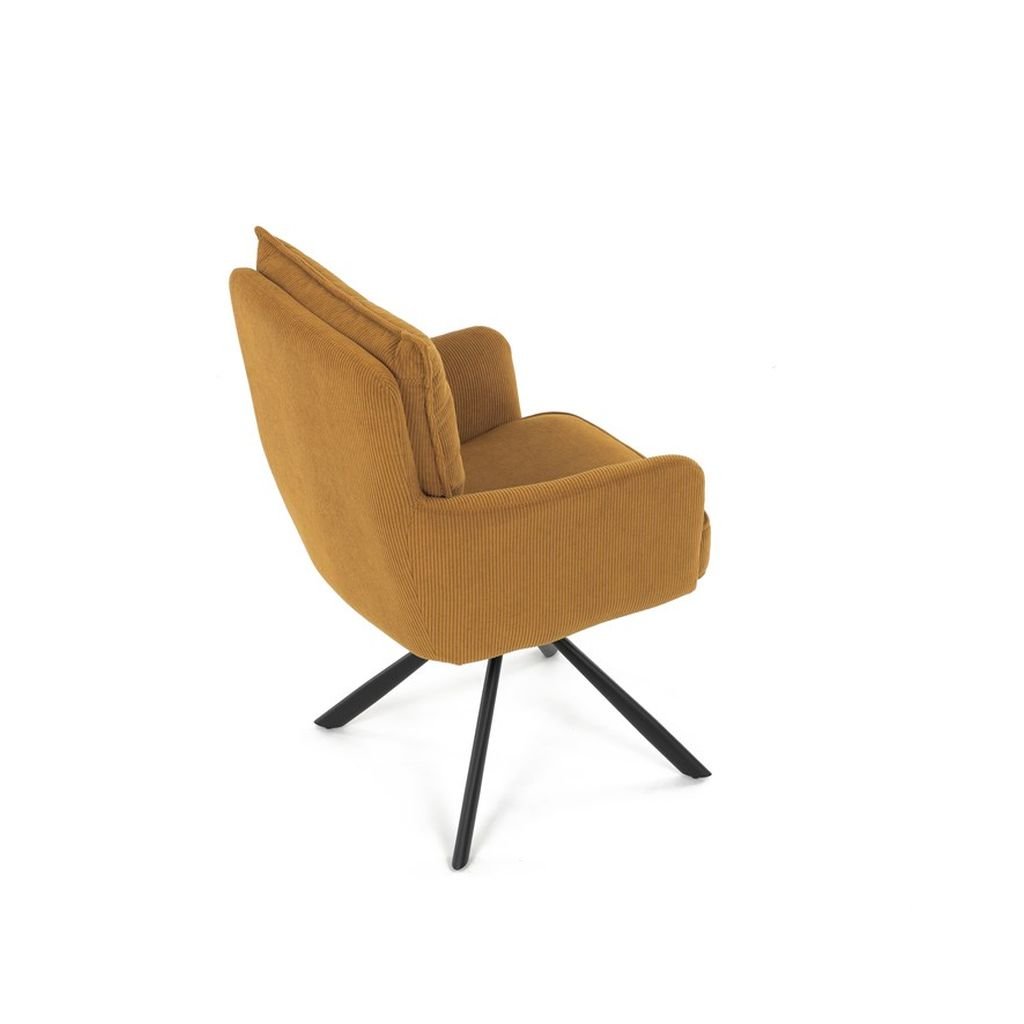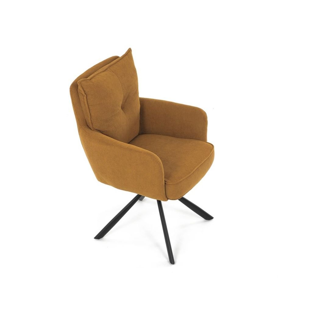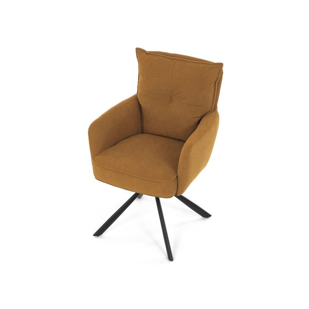 Sedák a operadlo sú potiahnuté kvalitnou žltou menčestrovou látkou, ktorá je nielen príjemná na dotyk, ale aj ľahko udržiavateľná. Vysoké polstrovanie poskytuje vynikajúce pohodlie, zatiaľ čo robustná konštrukcia zabezpečuje dlhú životnosť kresla.