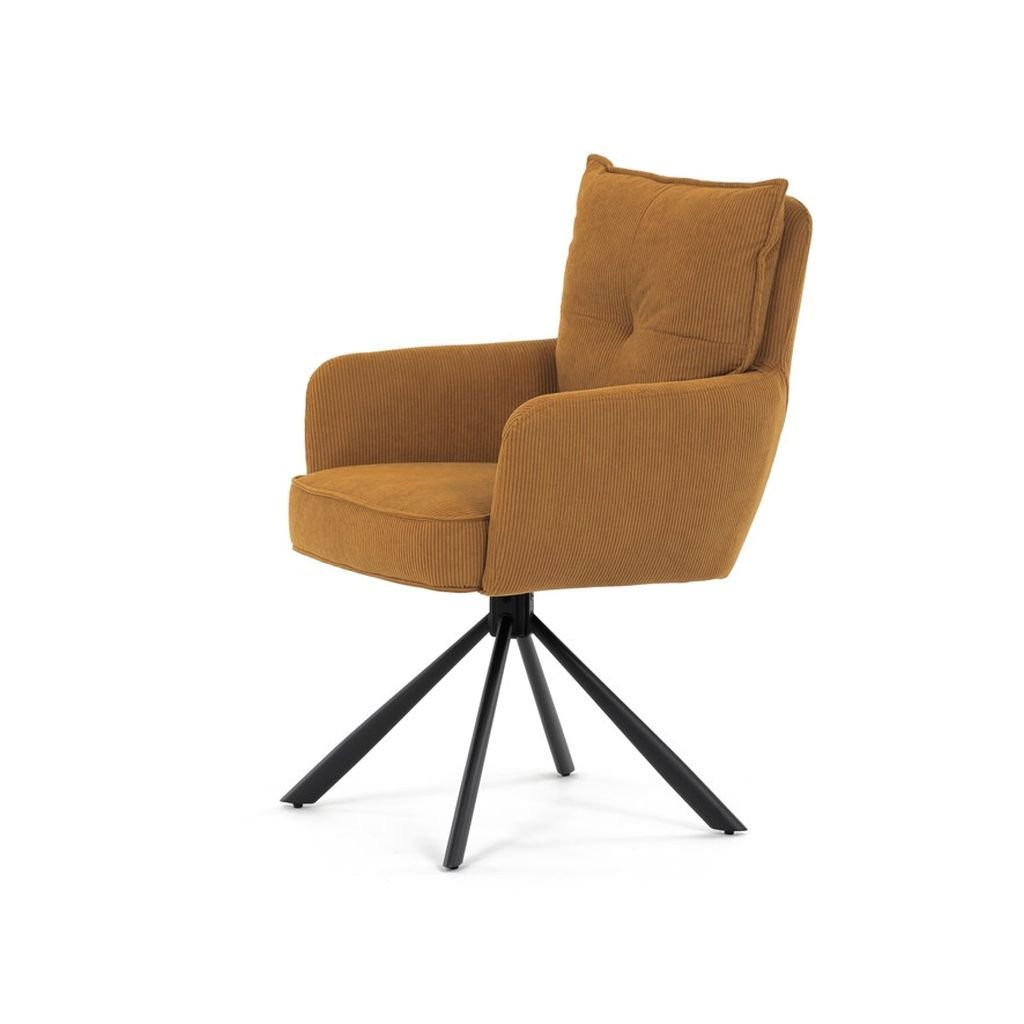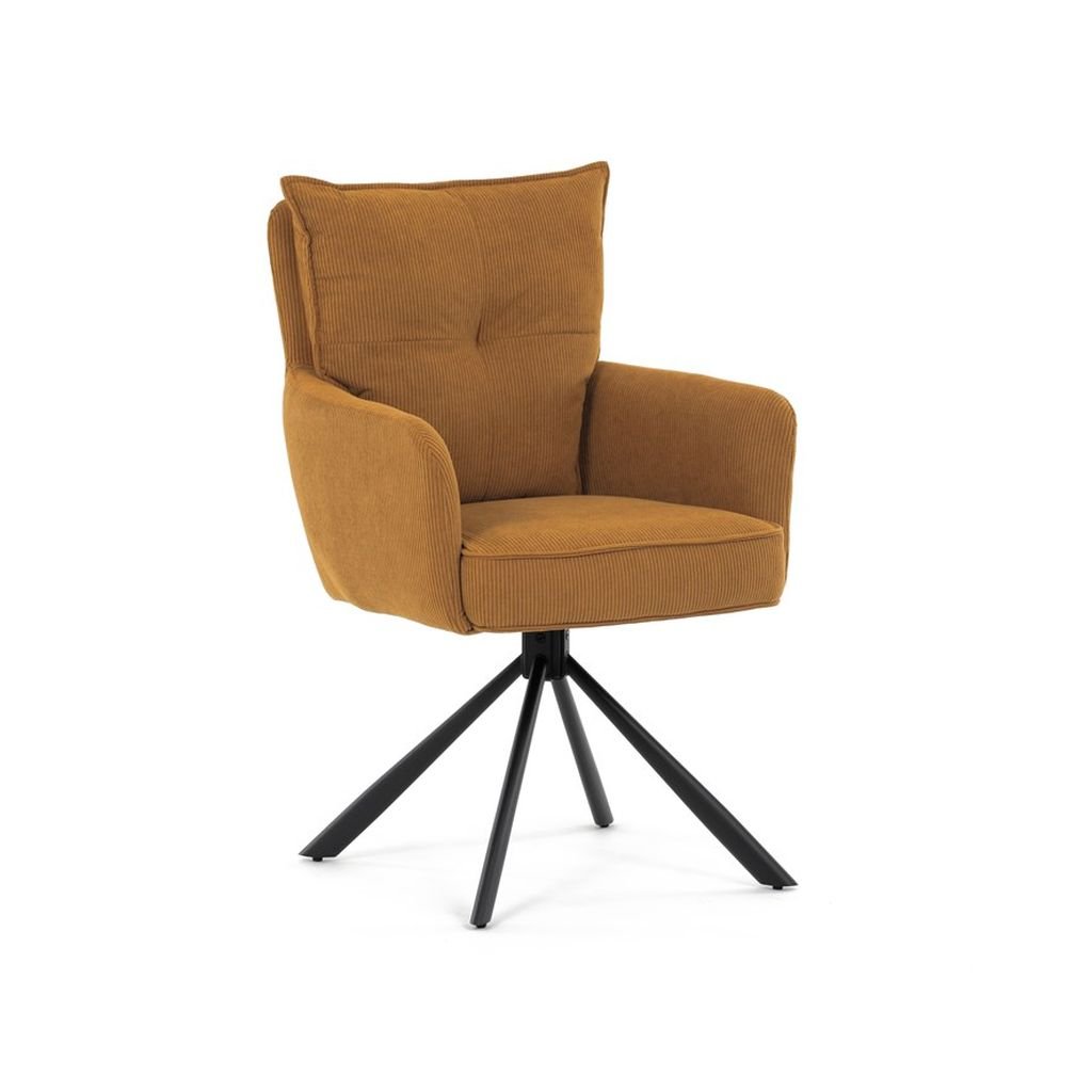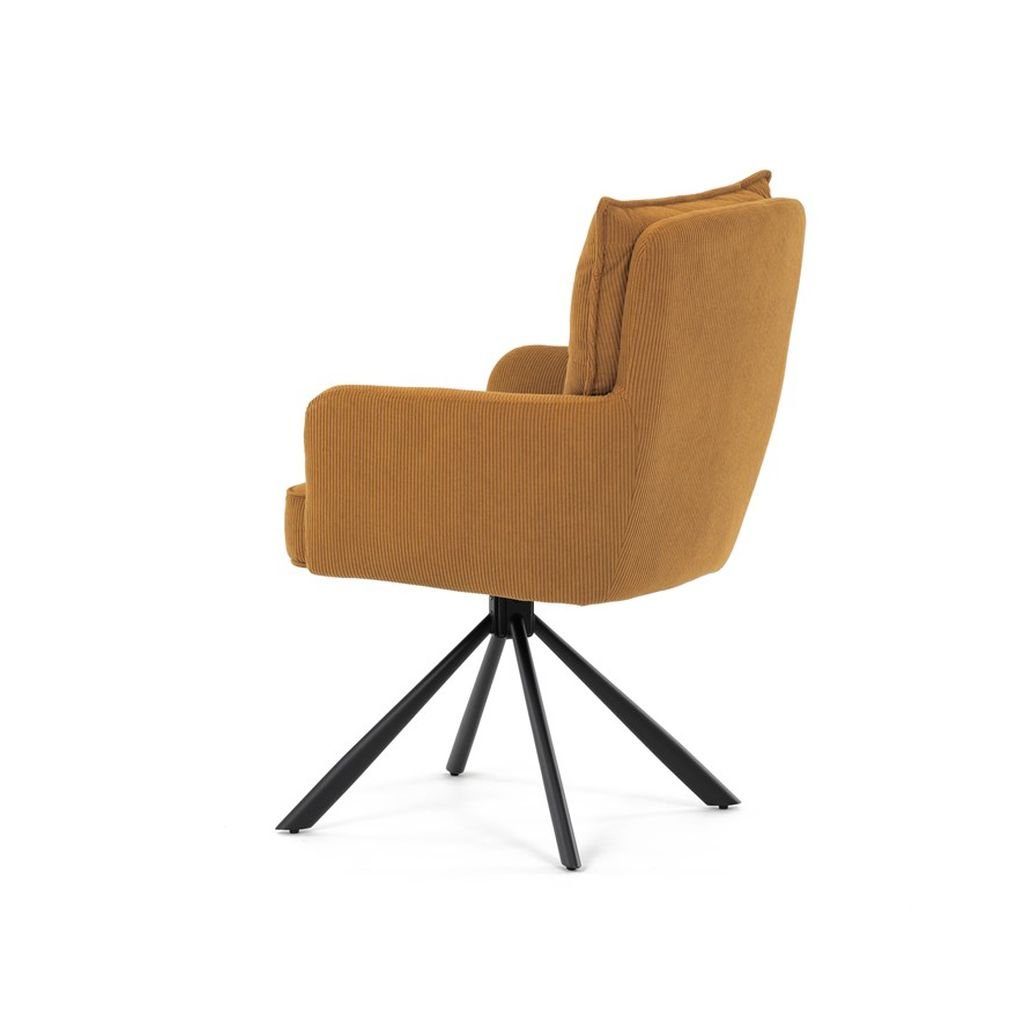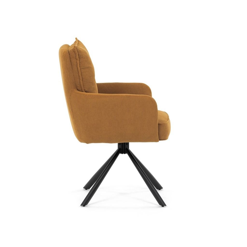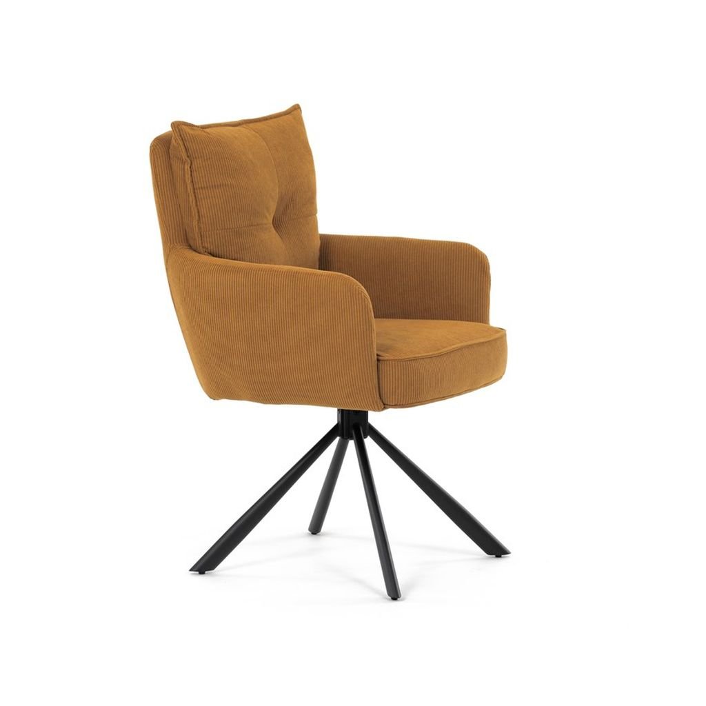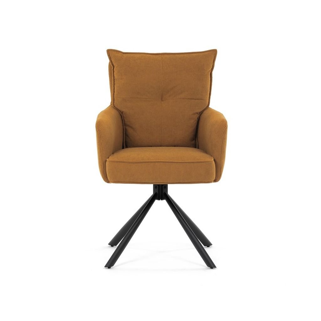 Sedák a operadlo sú potiahnuté kvalitnou žltou menčestrovou látkou, ktorá je nielen príjemná na dotyk, ale aj ľahko udržiavateľná. Vysoké polstrovanie poskytuje vynikajúce pohodlie, zatiaľ čo robustná konštrukcia zabezpečuje dlhú životnosť kresla.