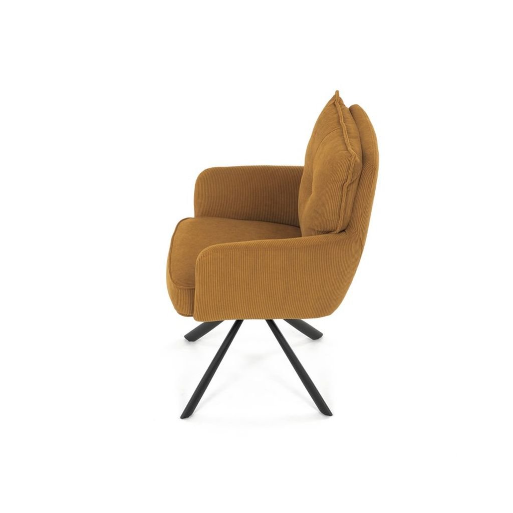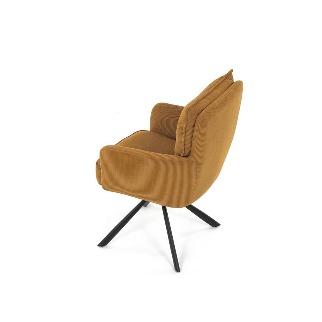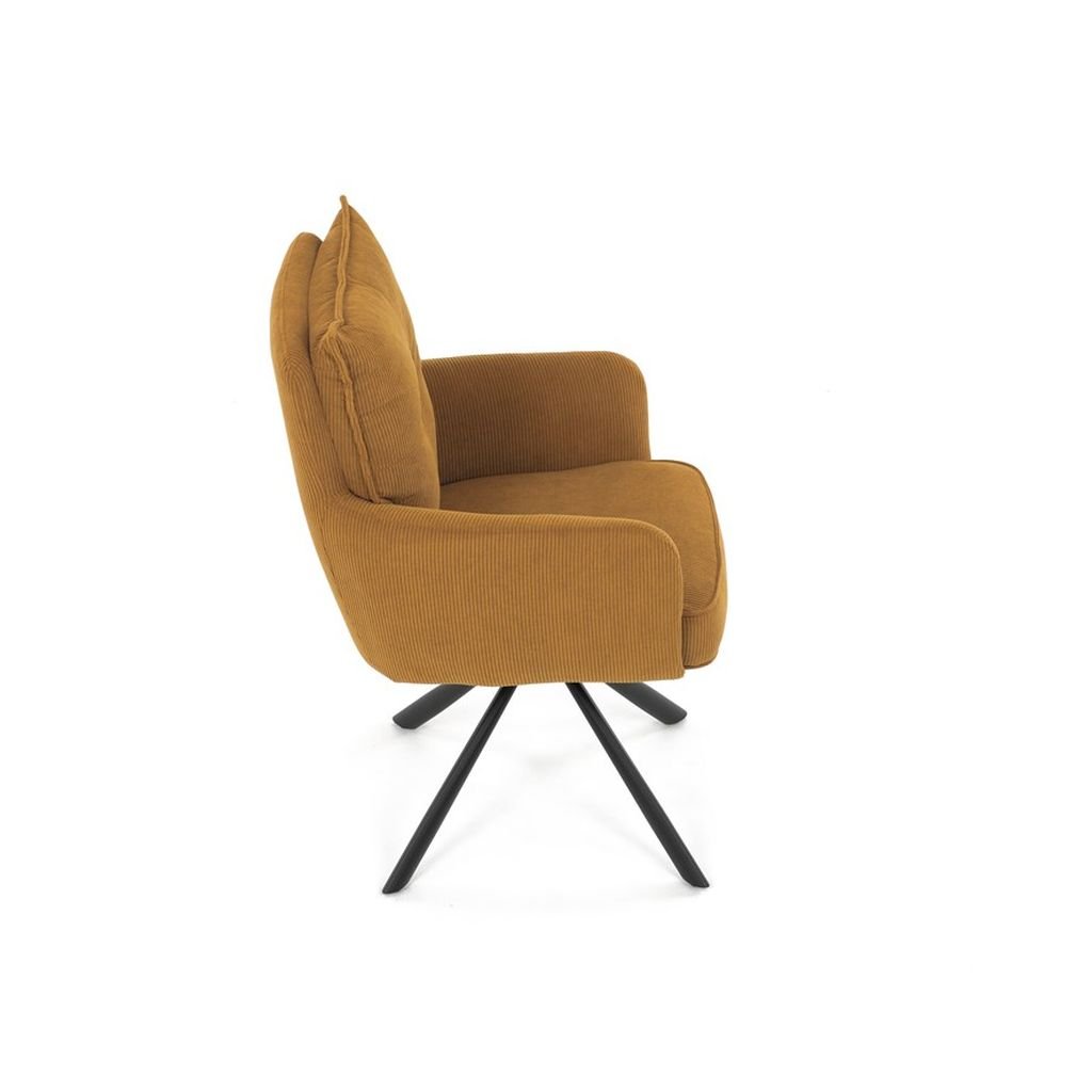 - Žltá menčestrová látka dodáva kreslu elegantný vzhľad a je príjemná na dotyk.