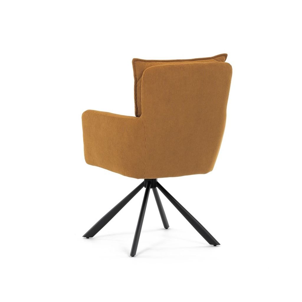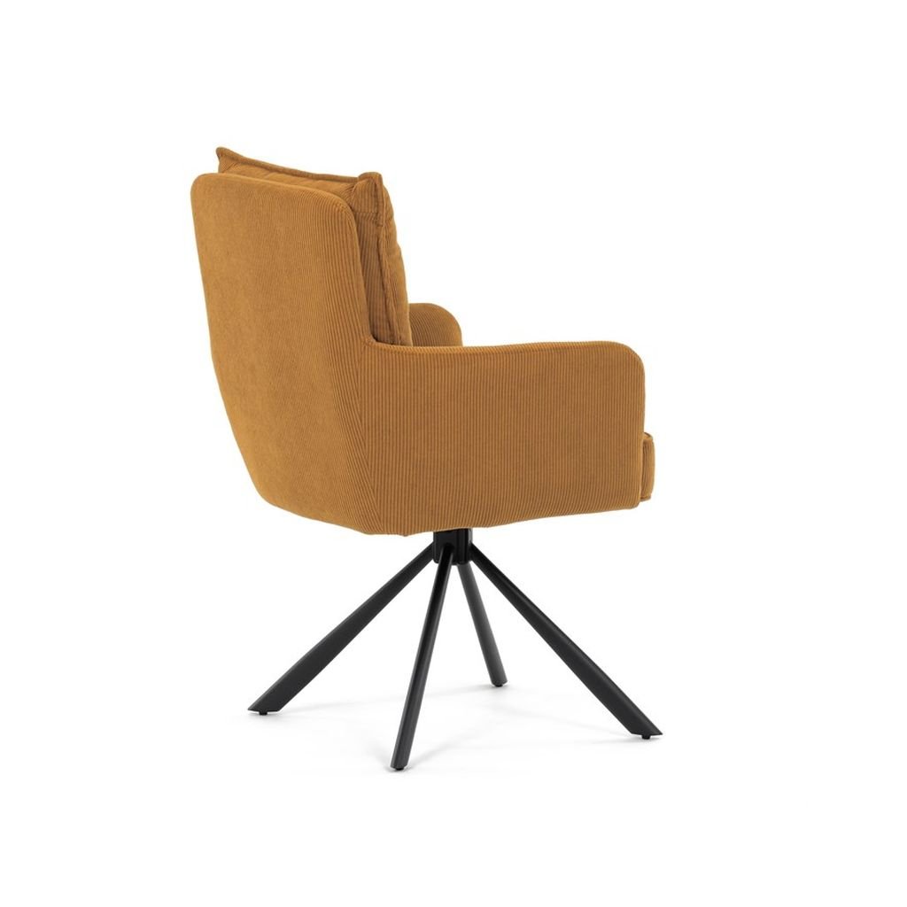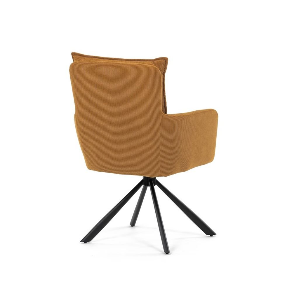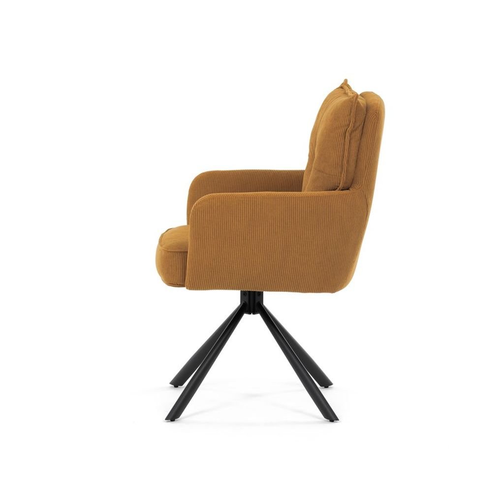 - Žltá menčestrová látka dodáva kreslu elegantný vzhľad a je príjemná na dotyk.