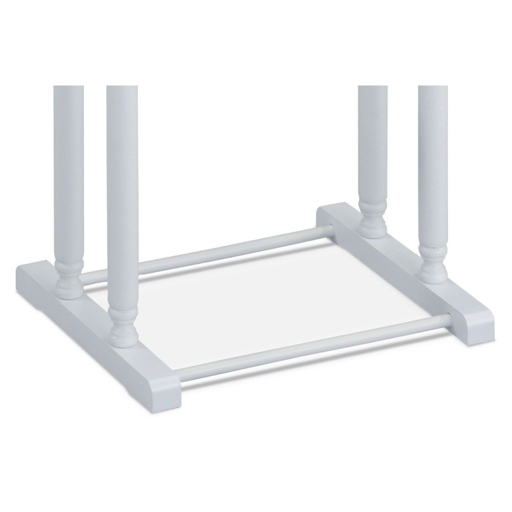Nemý sluha v bielom matnom laku je vyrobený z masívneho kaučukovníka. S výškou 108 cm ponúka priestor na zavesenie oblečenia a úložný priestor na nohavice či doplnky. Nosnosť 7 kg.