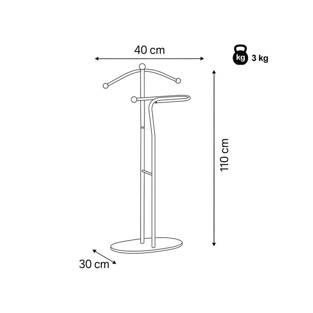 Vďaka kvalitnej kovovej konštrukcii a robustnej základni je tento nemý sluha nielen štýlový, ale aj mimoriadne odolný. Jeho praktické ramienka umožňujú bezpečné zavesenie oblečenia bez rizika poškodenia.