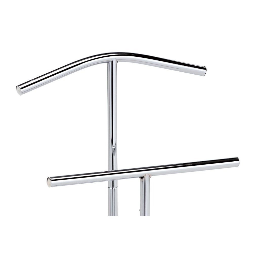 Nemý sluha v chrómovom prevedení ponúka praktické a štýlové riešenie na uloženie odevov. Stabilné kovové telo s výškou 104 cm a nosnosťou 5 kg je ideálne pre spálne a predsiene. Minimalistický dizajn