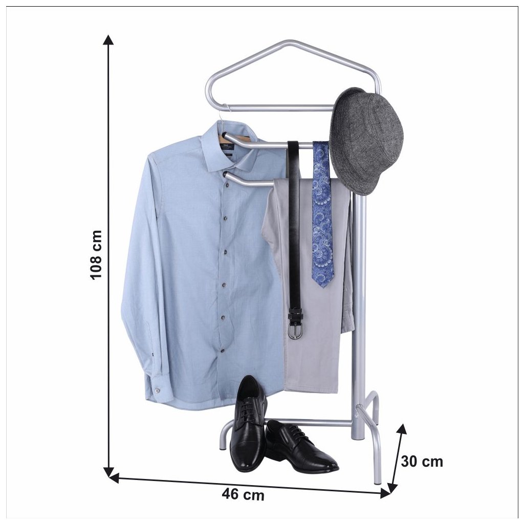 Nemý sluha OTMAR v sivej farbe je praktický kovový vešiak s rozmermi 46x30x108 cm. Ideálny na organizáciu oblečenia a doplnkov v predsieni alebo spálni.