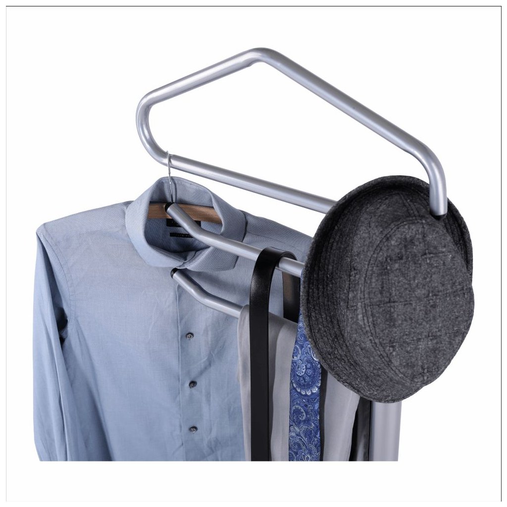 Nemý sluha OTMAR v sivom prevedení je ideálnym pomocníkom pre každodenné organizovanie vášho oblečenia. Jeho elegantný a moderný dizajn skvele zapadne do každého interiéru a prinesie do vášho domova štýlový nádych. Vyrobený z kvalitného kovu, je dostatočne pevný, aby udržal vaše oblečenie a doplnky.