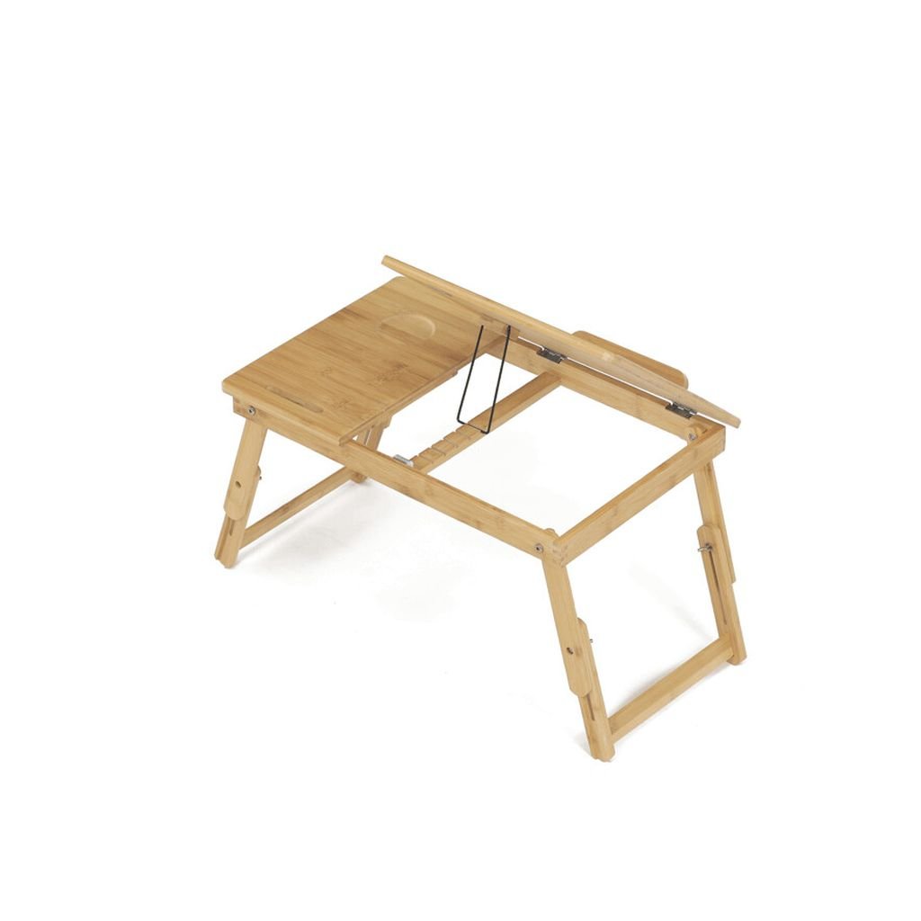 Odkladací stolík z masívneho bambusu v prírodnom odtieni je ideálny na prácu aj relax. S nastaviteľnou doskou a zásuvkou na drobnosti ponúka praktické a štýlové riešenie do každého interiéru.