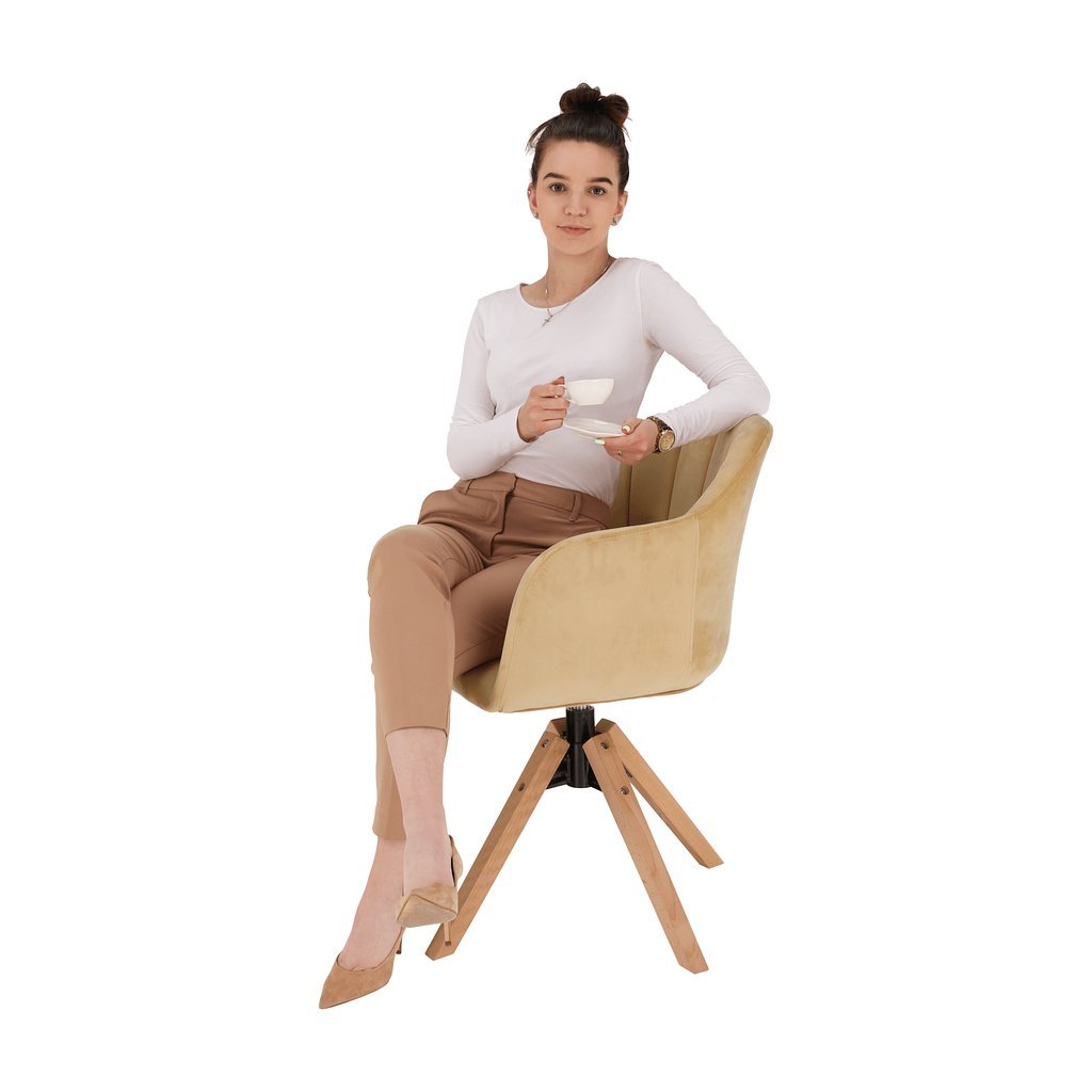Otočné kreslo DALIO v béžovej látke kombinuje jemný klasický dizajn a stabilitu masívnych bukových nôh. Ideálne oživenie pre každý interiér, maximálna nosnosť 110 kg. Rozmery: 58x61,5x82,5 cm.
