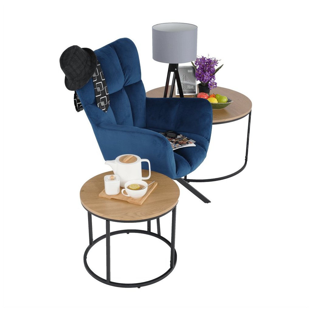 Objavte pohodlie a štýl s otočným kreslom KOMODO, ktoré je ideálnym doplnkom do vašej obývačky alebo kancelárie. Jeho moderný dizajn v elegantnej modrej zamatovej látke dodá priestoru šmrnc a útulnosť. Vďaka funkcii otočenia si môžete užívať voľnosť pohybu a získať tak maximálne pohodlie pri každodenných činnostiach.
