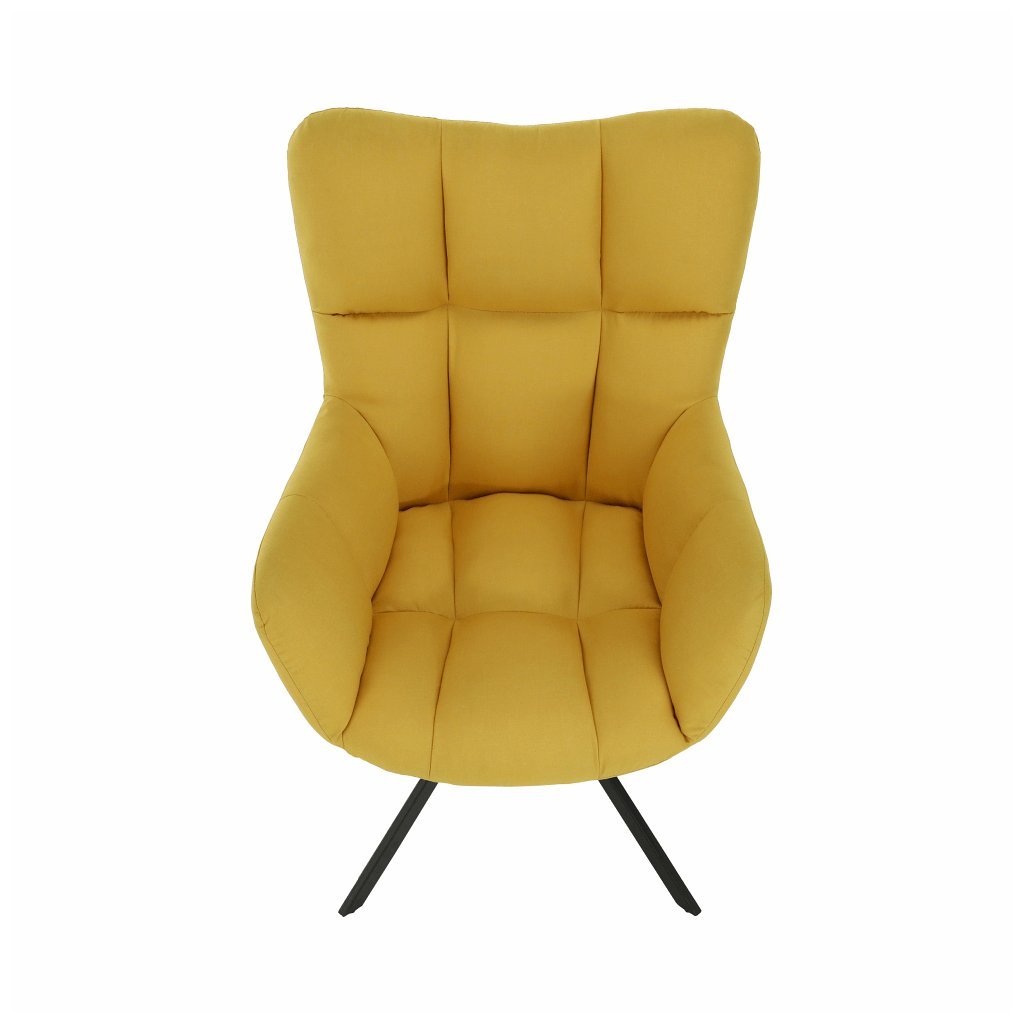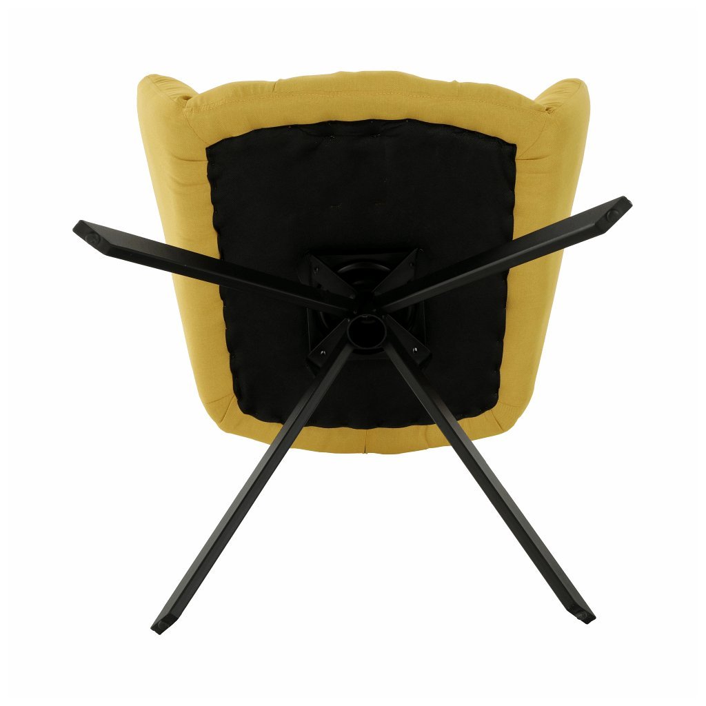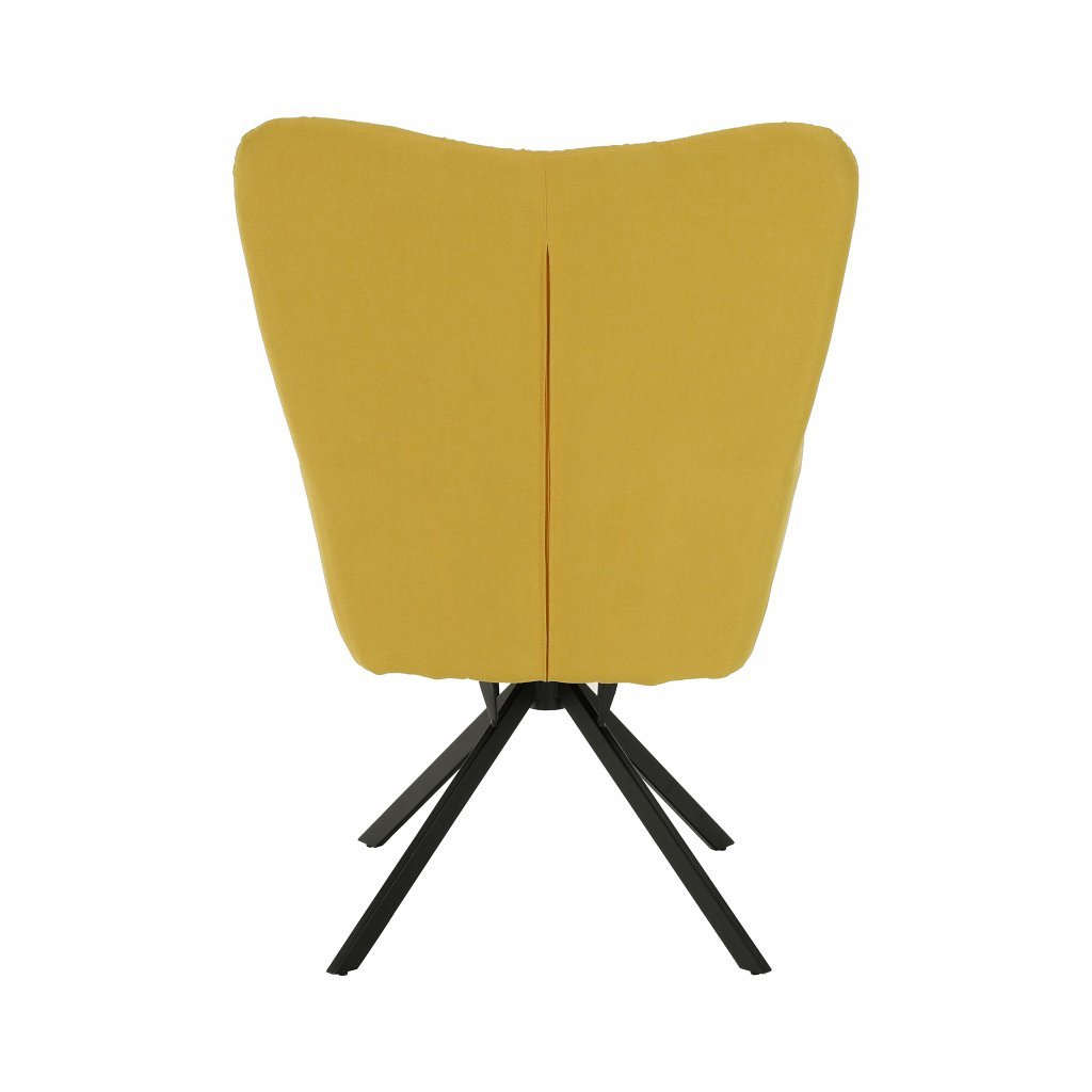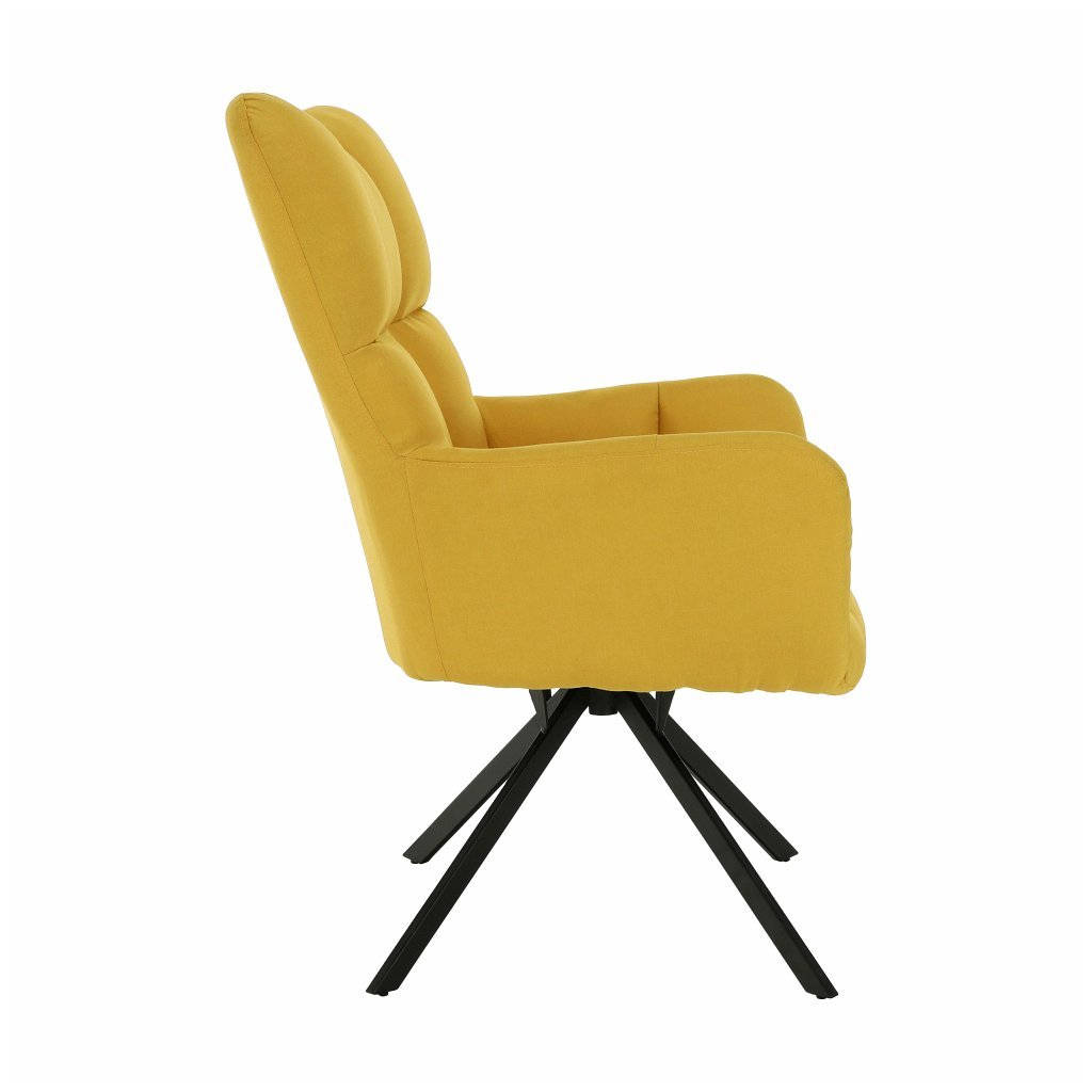 Otočné kreslo KOMODO v žltej látke kombinuje moderný dizajn a pohodlie. Pevné čierne kovové nohy zabezpečujú stabilitu. Rozmery (ŠxHxV): 67x72x97 cm, hmotnosť 11 kg. Dodávané v demonte.