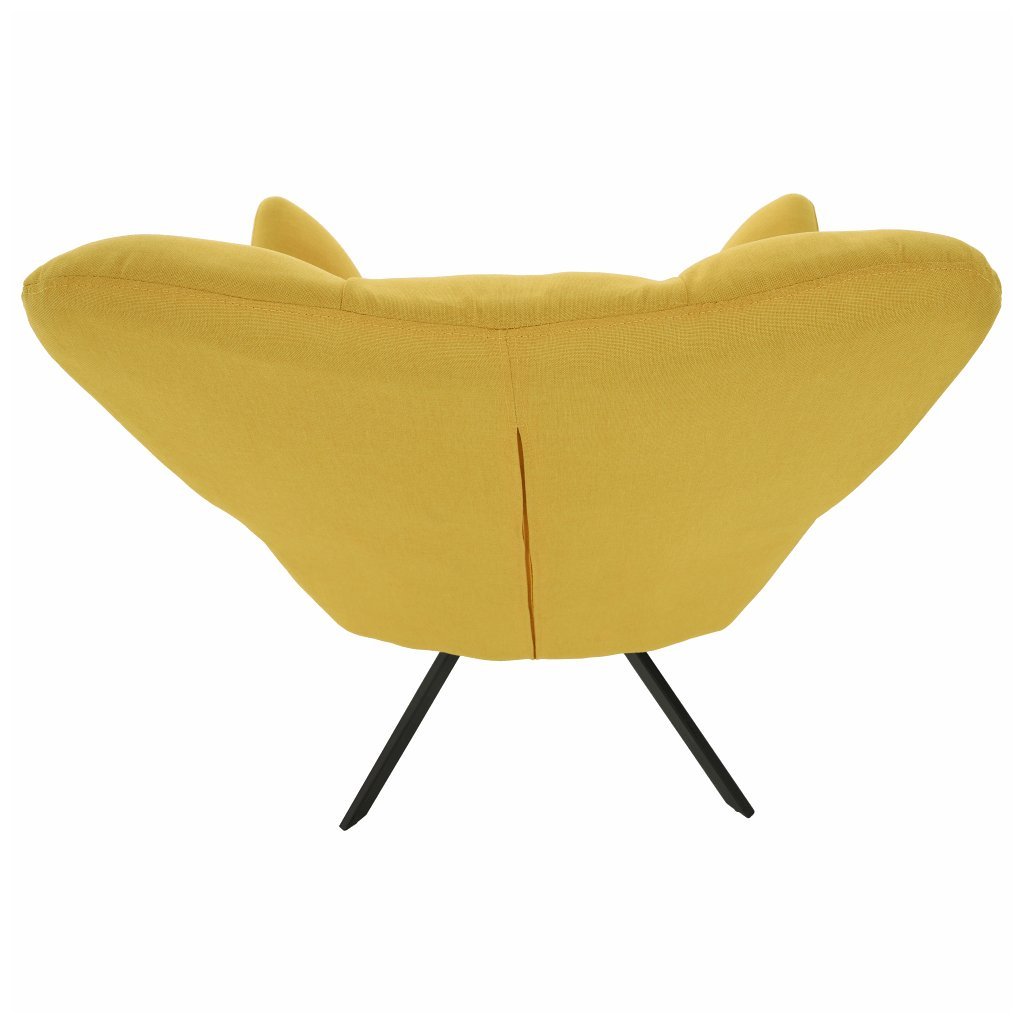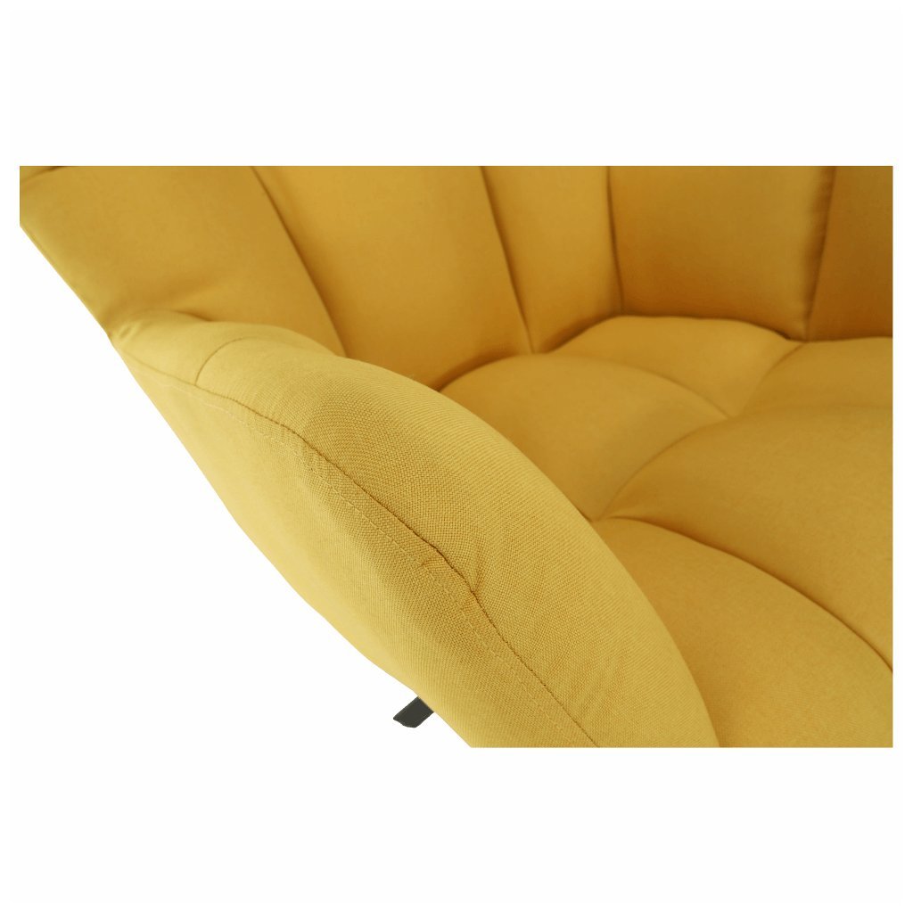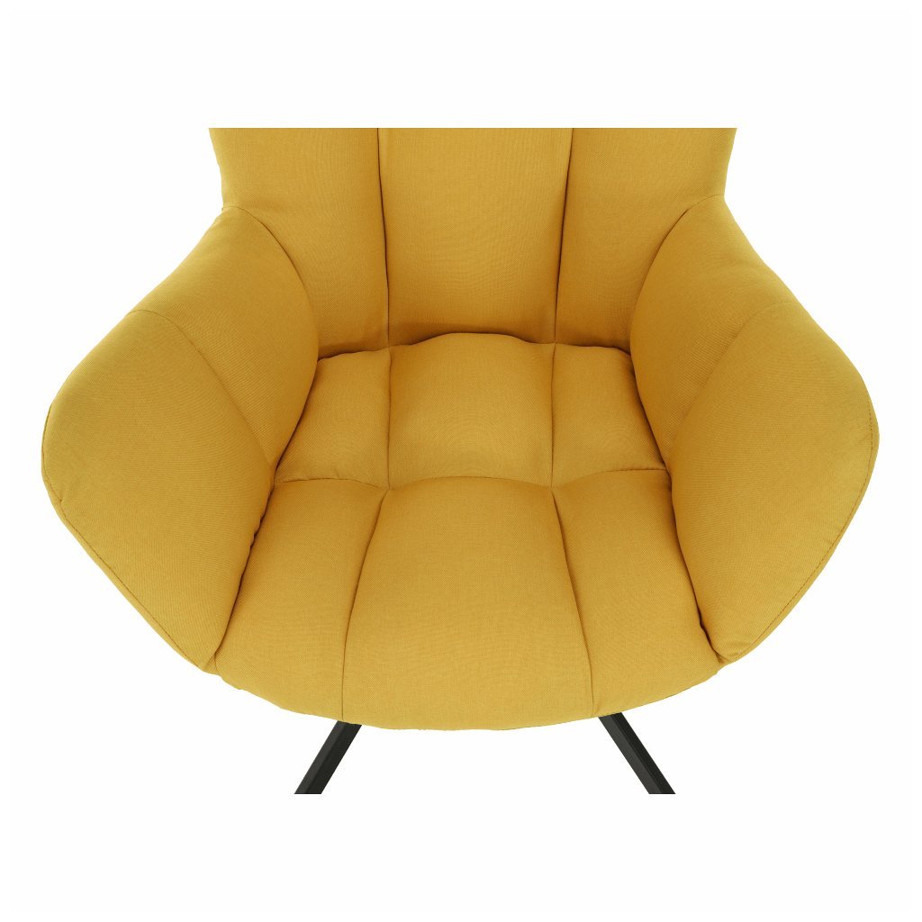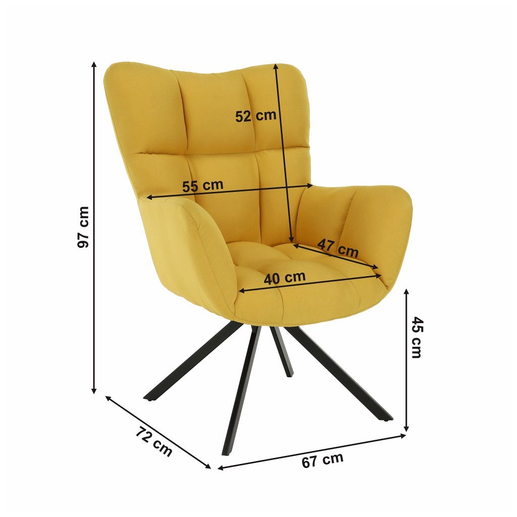 Otočné kreslo KOMODO v žltej látke kombinuje moderný dizajn a pohodlie. Pevné čierne kovové nohy zabezpečujú stabilitu. Rozmery (ŠxHxV): 67x72x97 cm, hmotnosť 11 kg. Dodávané v demonte.