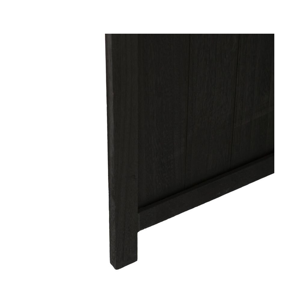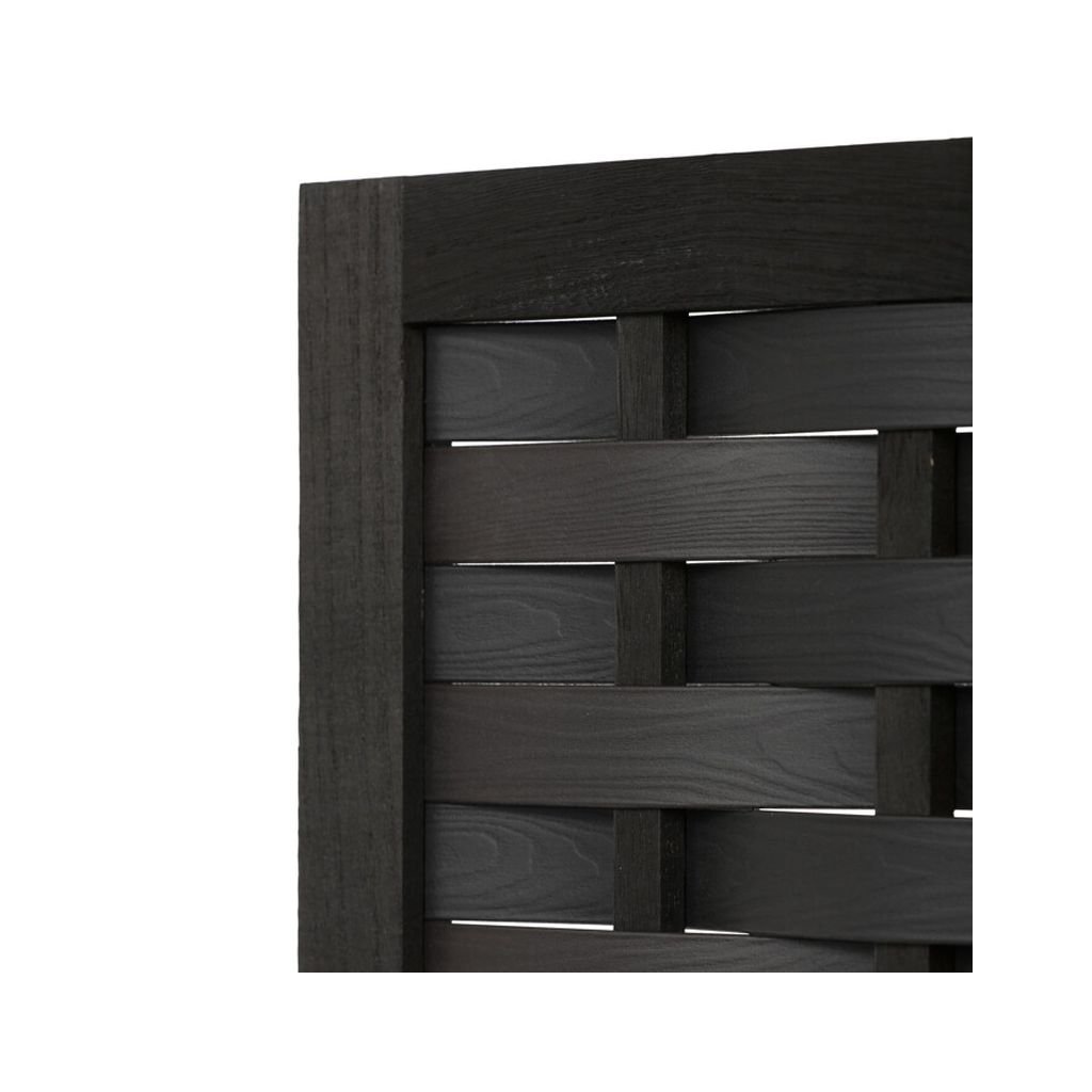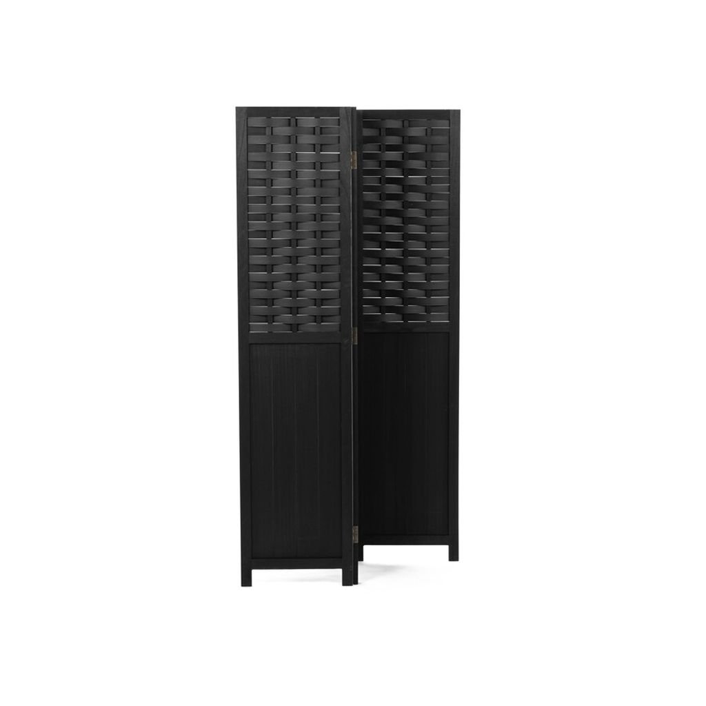 Trojdielny paraván z masívneho smrekového dreva v čiernej farbe efektívne rozdeľuje priestor. Prepletené lamely prepúšťajú svetlo a zabezpečujú súkromie. Pevné pánty umožňujú jednoduché skladanie.