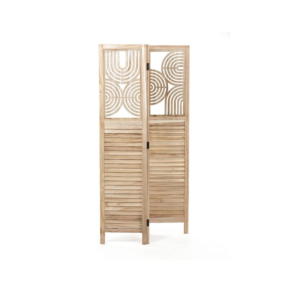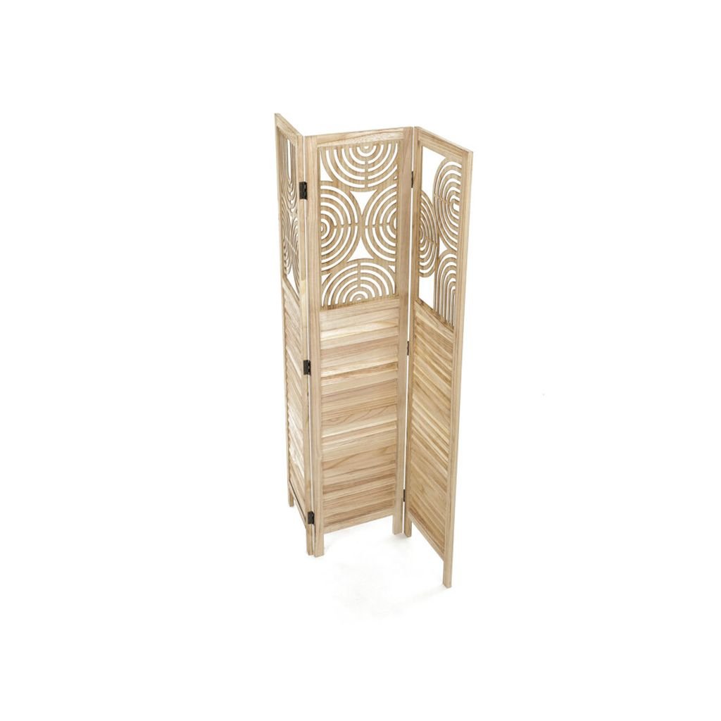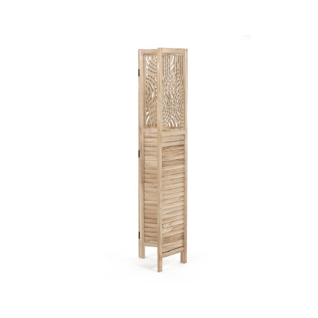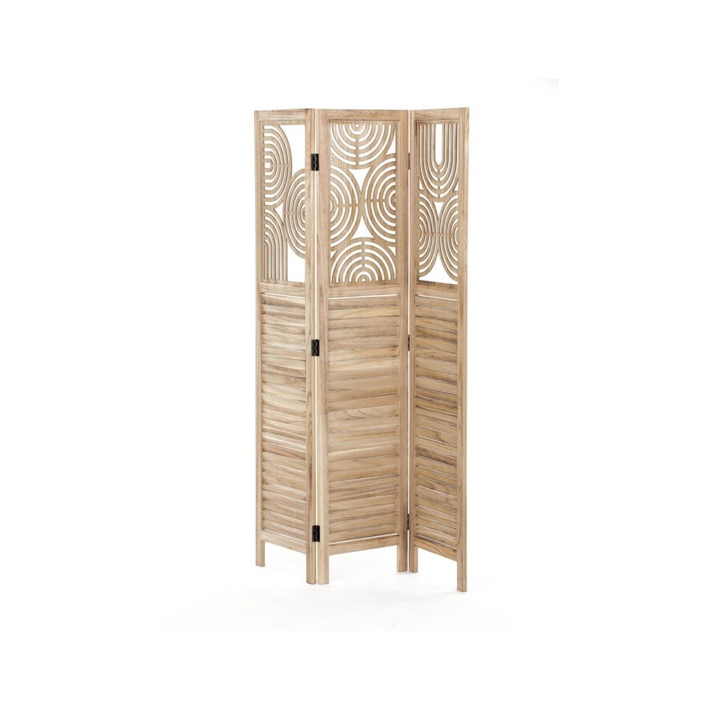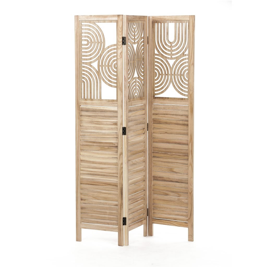 Tento trojdielny paraván je vyrobený z kvalitného dreva, čo zabezpečuje jeho odolnosť a stabilitu. Dekoratívna perforácia v hornej časti dodáva produktu zaujímavý vizuálny efekt, čím sa stáva nielen funkčným, ale aj estetickým prvkom interiéru.