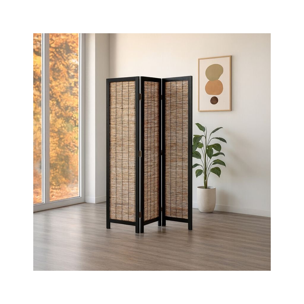 Paraván v čiernom prevedení predstavuje ideálne riešenie na rozdelenie priestoru a zabezpečenie súkromia v rôznych interiéroch. Jeho moderný a prírodný vzhľad sa hodí do obývacích izieb, kancelárií či komerčných priestorov, pričom ponúka praktickosť a estetiku v jednom.