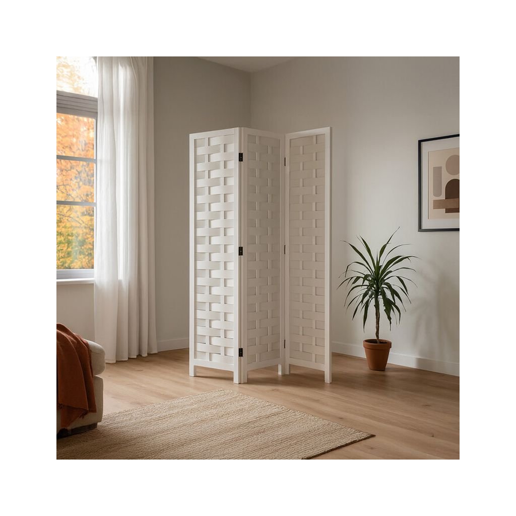 Trojdielny paraván z masívneho smrekového dreva v bielej farbe je praktickým a dekoratívnym doplnkom. Stabilný a ľahko nastaviteľný, ideálny na rozdelenie priestoru a vytvorenie súkromia. Rozmer jedné