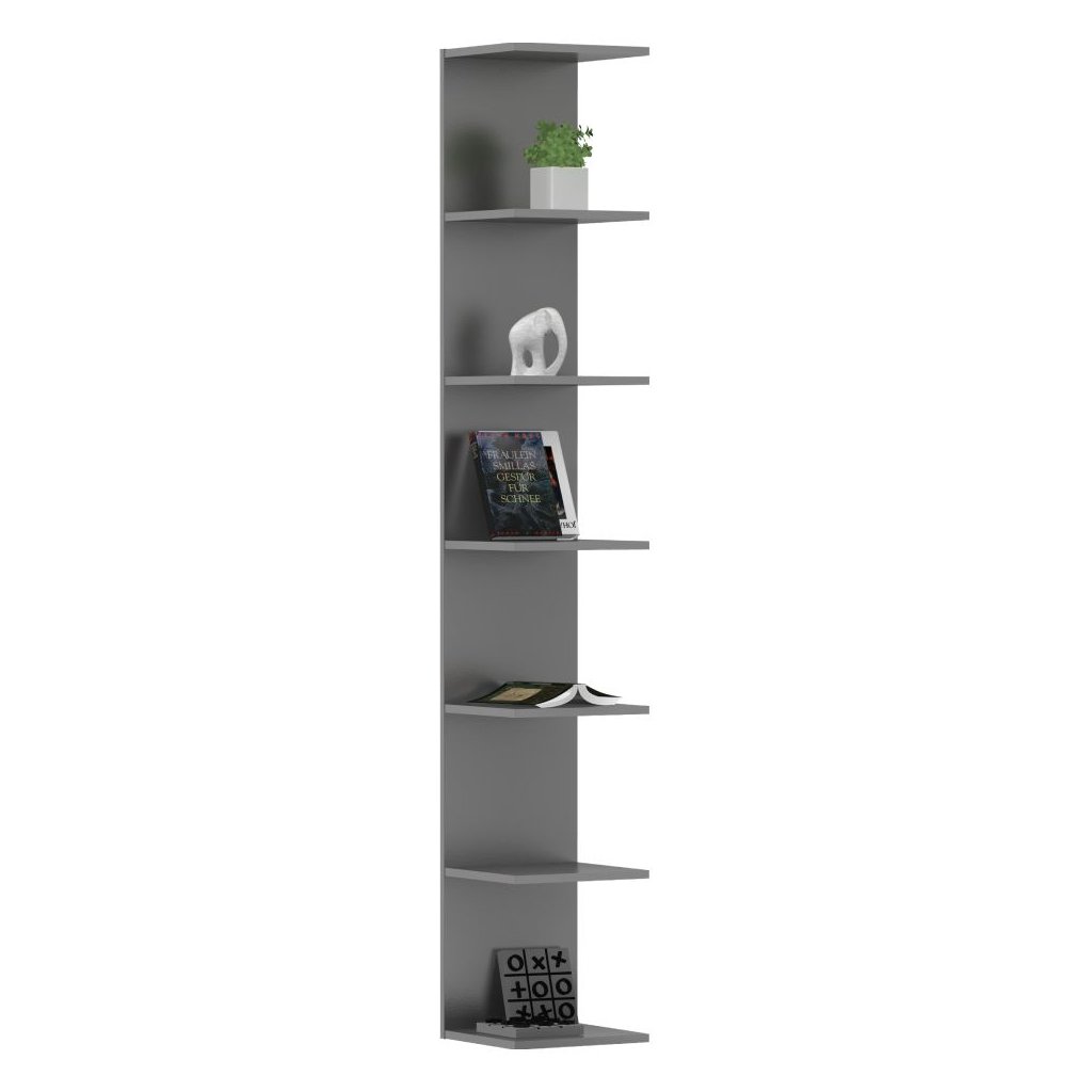 Polica DORNA v grafitovej farbe je moderný a praktický doplnok do vášho interiéru. S rozmermi 30x28x190 cm a otvoreným úložným priestorom ponúka dostatok miesta na dekorácie. Odporúčame pripevniť k st